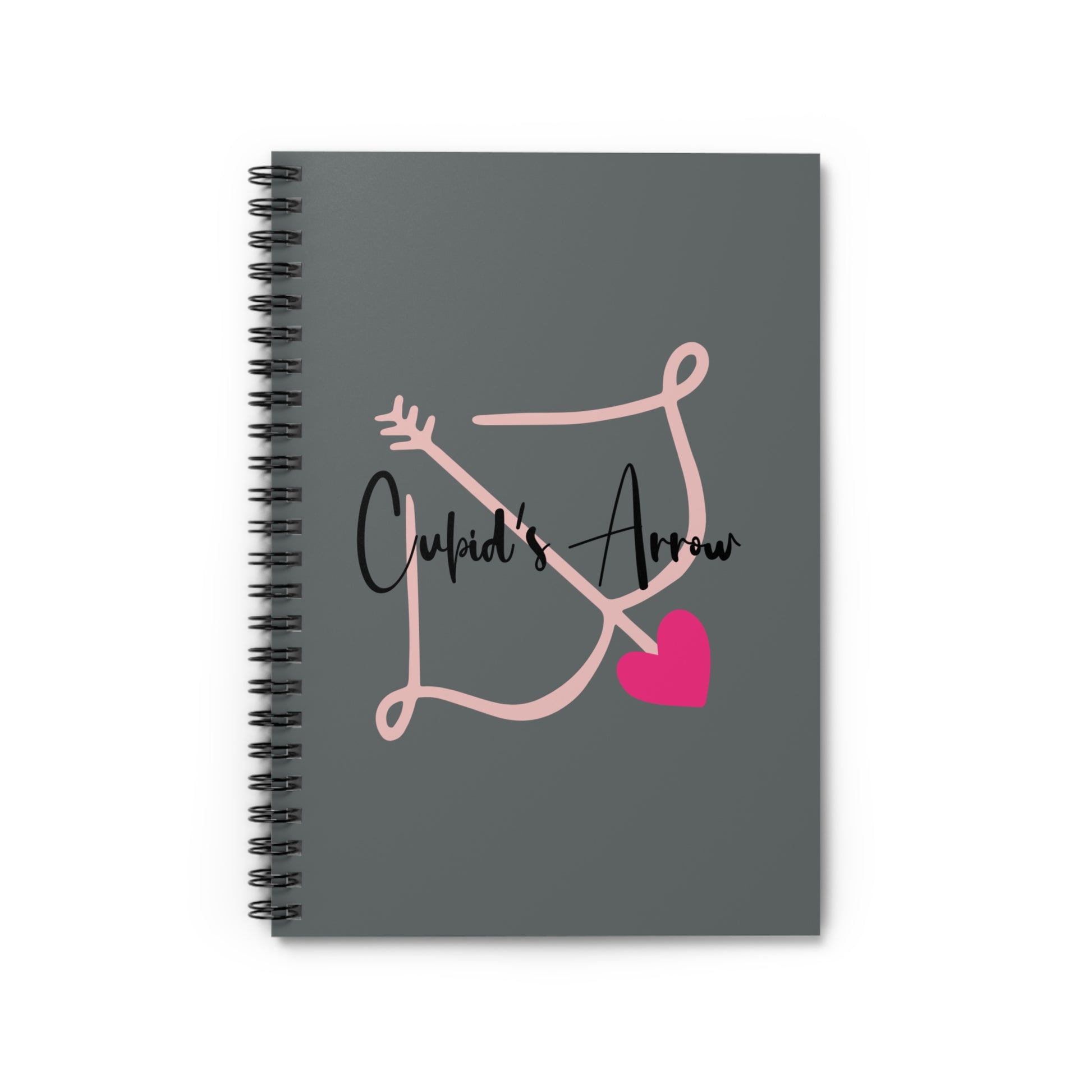 Elevate your writing experience with this stylish Spiral Notebook, designed for those who appreciate both beauty and functionality. The soft, dark grey cover features a charming illustration of Cupid's arrow, invoking a sense of romance and creativity. Perfect for jotting down your thoughts, dreams, and plans, this notebook is an essential accessory for students, professionals, and anyone who loves to write. Whether you're making lists, sketching ideas, or journaling, this notebook adds a touch of elegance to your daily routine. Ideal for Valentine’s Day, anniversaries, or as a thoughtful gift for creatives and romantics alike, this notebook is sure to inspire and delight!