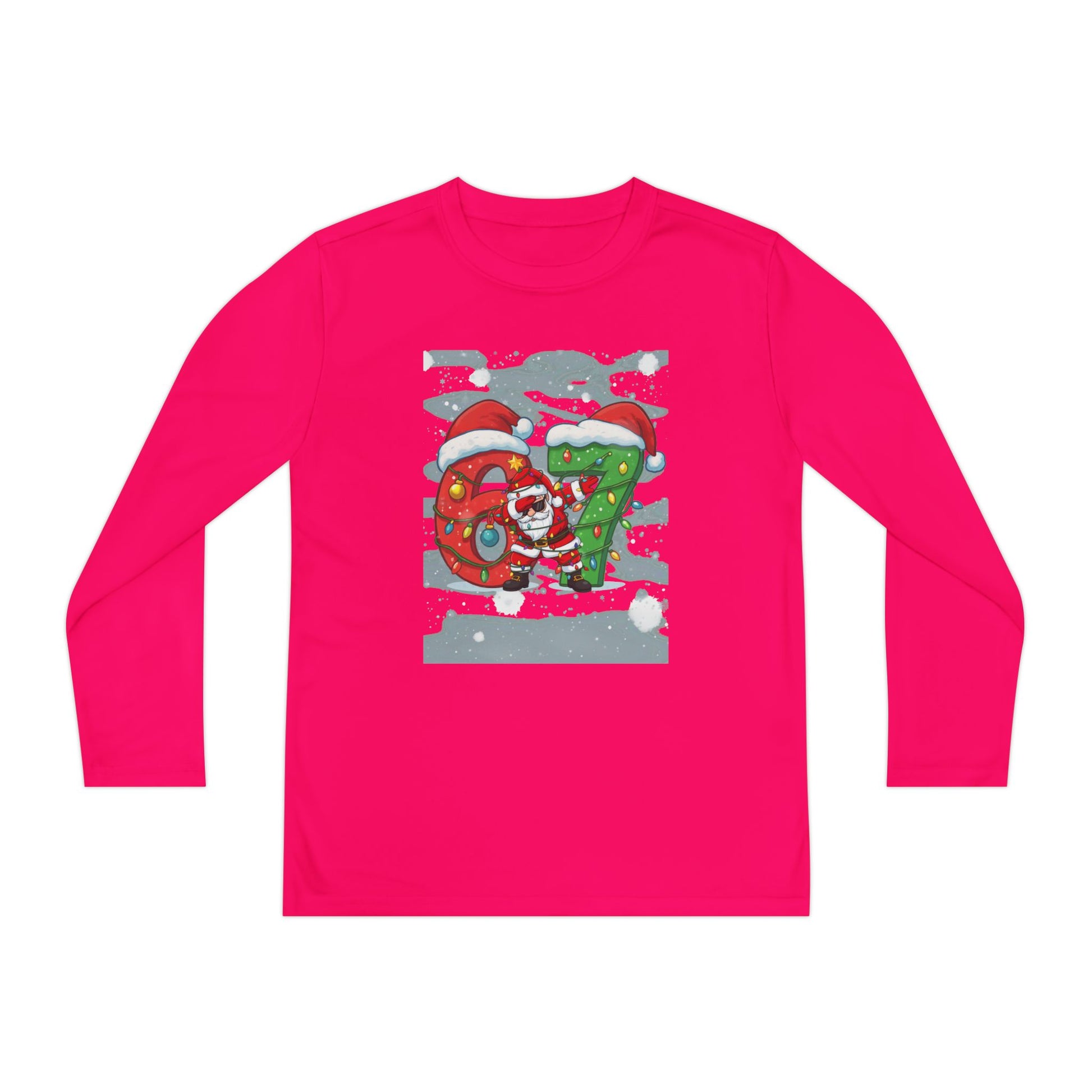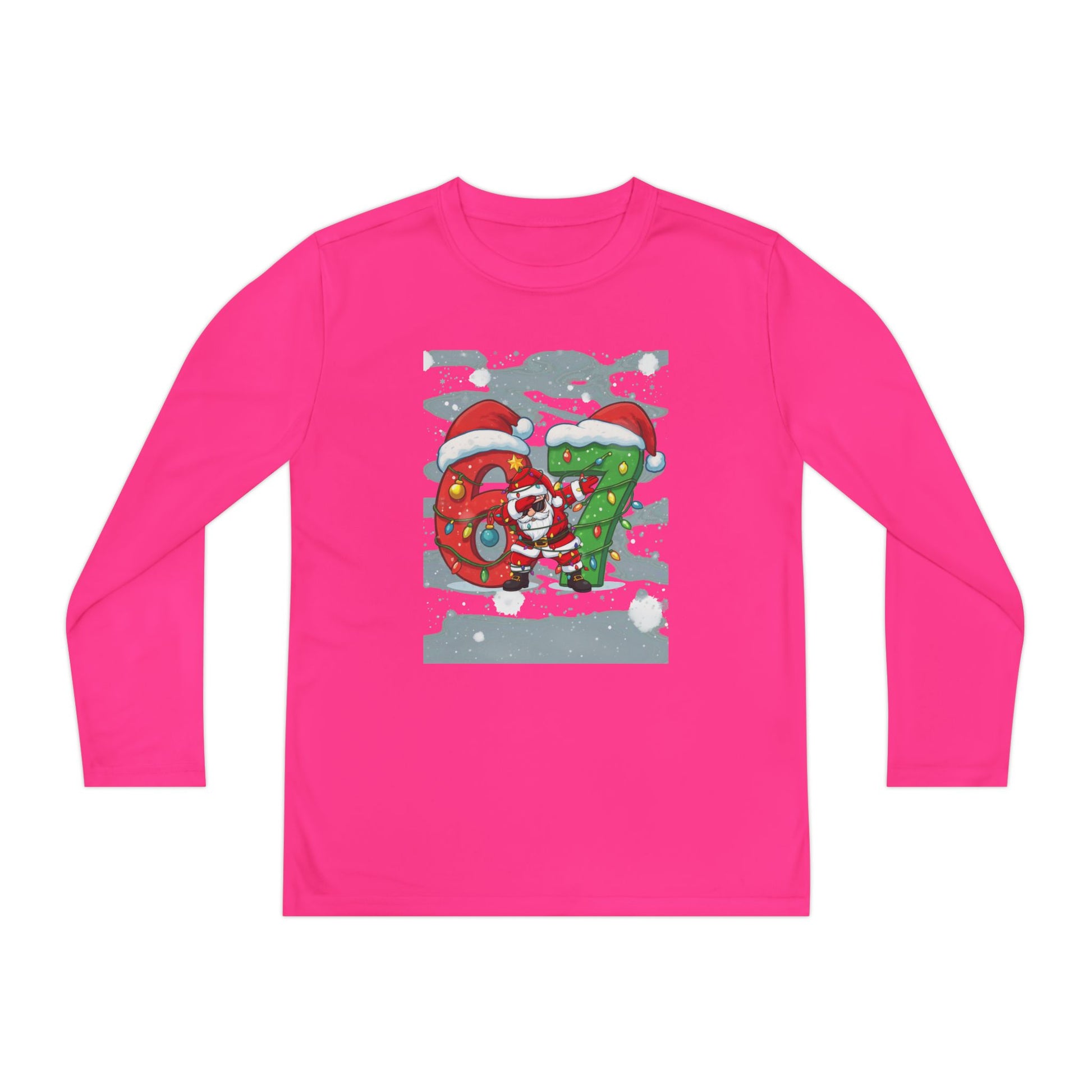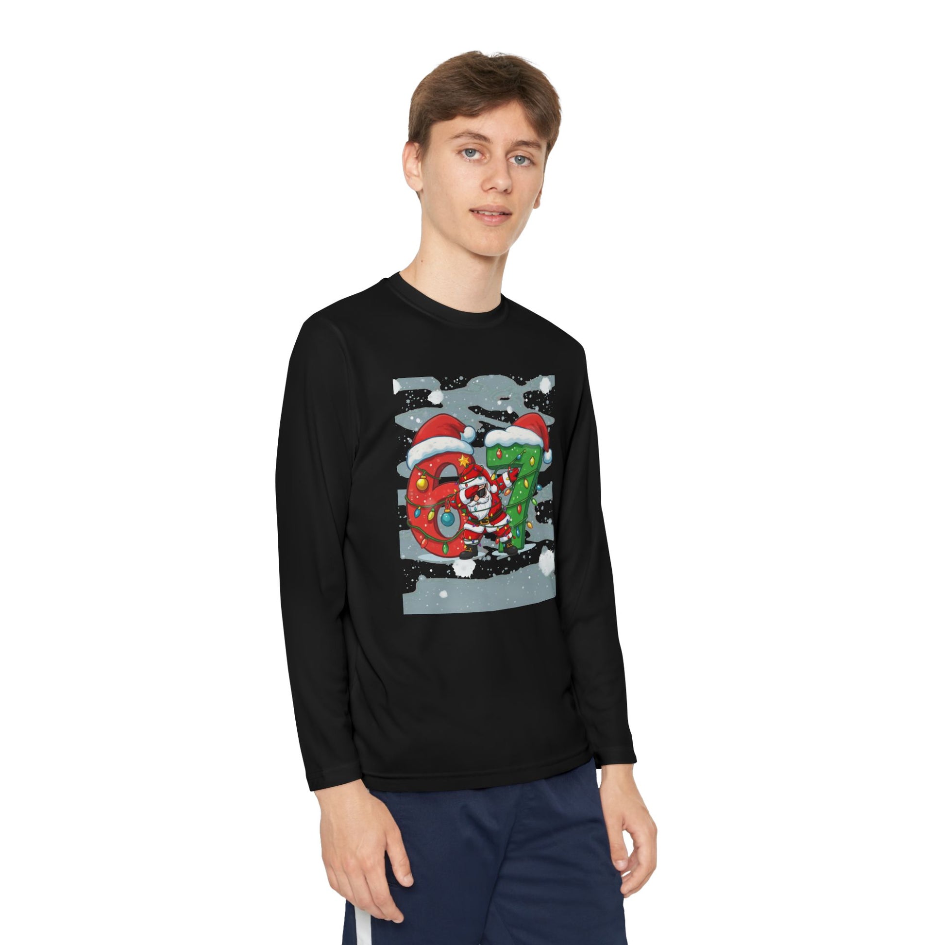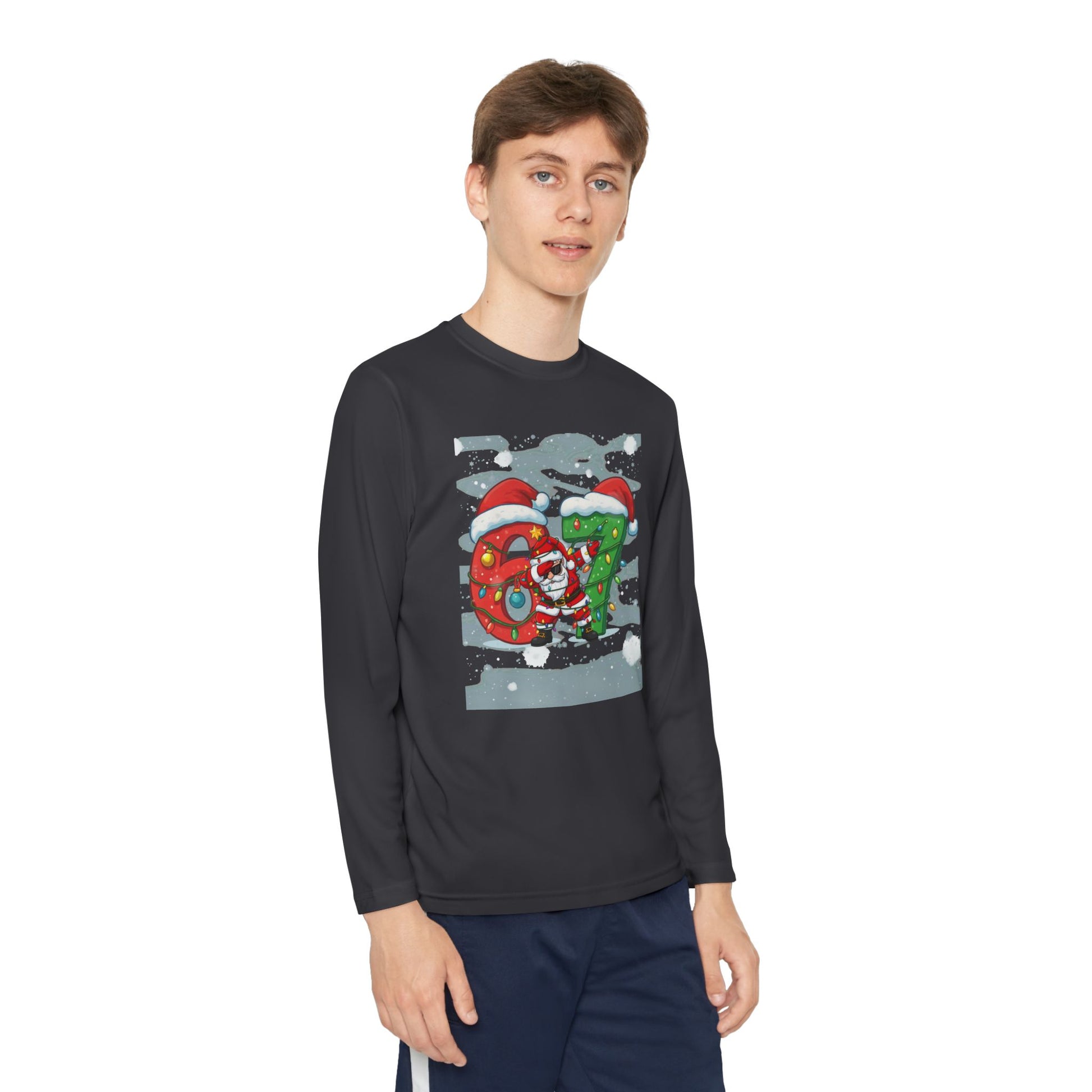 Soft, lightweight long sleeve made for active kids who want to move, play, and celebrate the season. The breathable polyester locks in shape and pulls moisture away so little athletes stay cool and comfortable during games, practices, or playground adventures. A festive DTF print adds cheerful holiday character without weighing the shirt down. With an athletic cut and tear-away label, this top sits close to the body for easy layering under jackets or over base layers — a practical pick for chilly mornings, winter rehearsals, or cozy family outings.