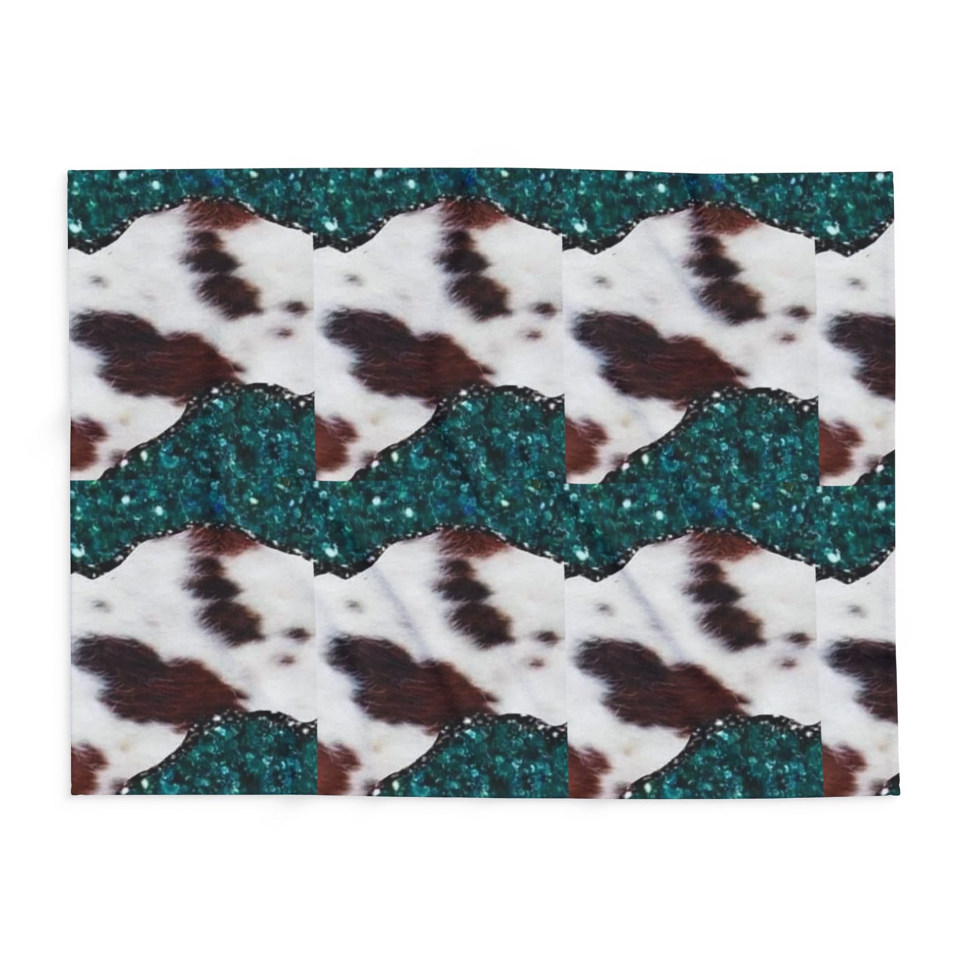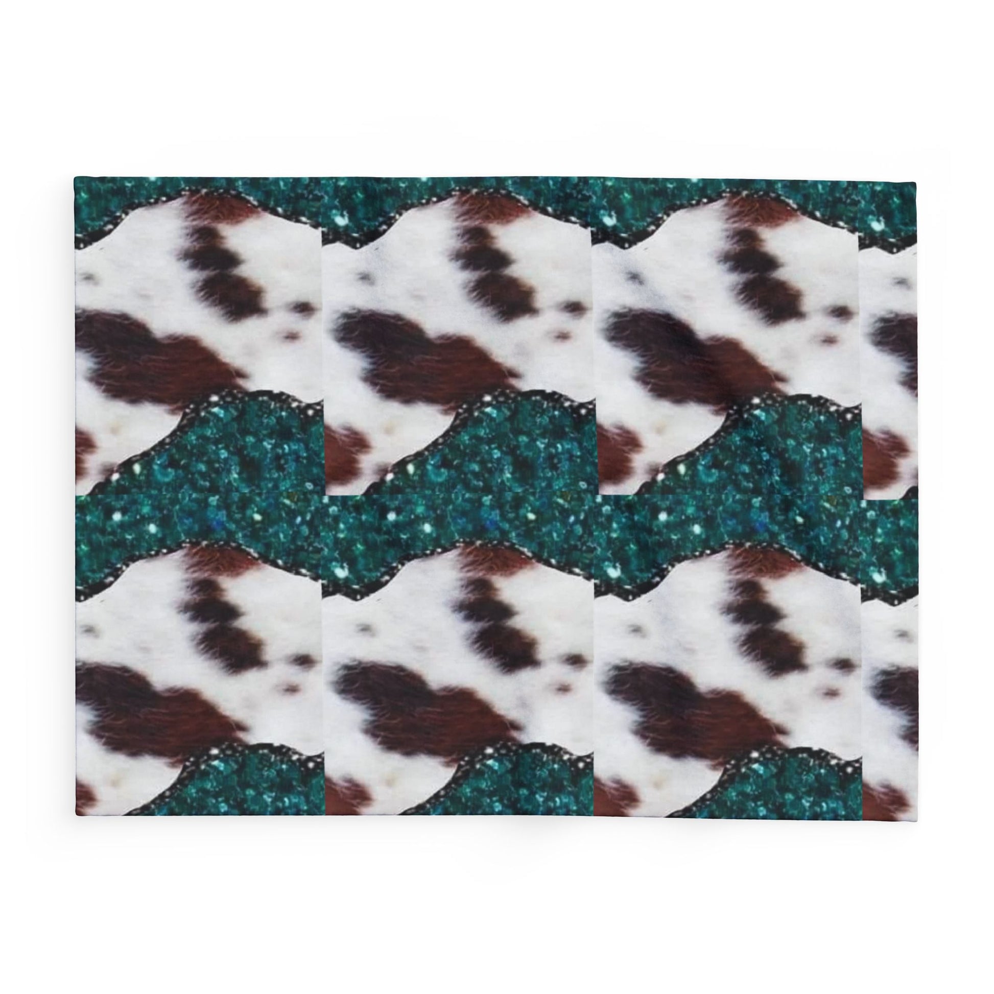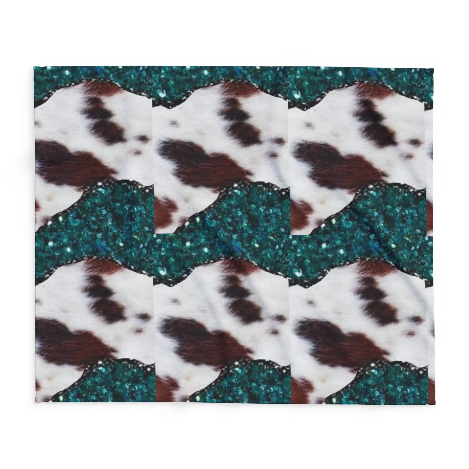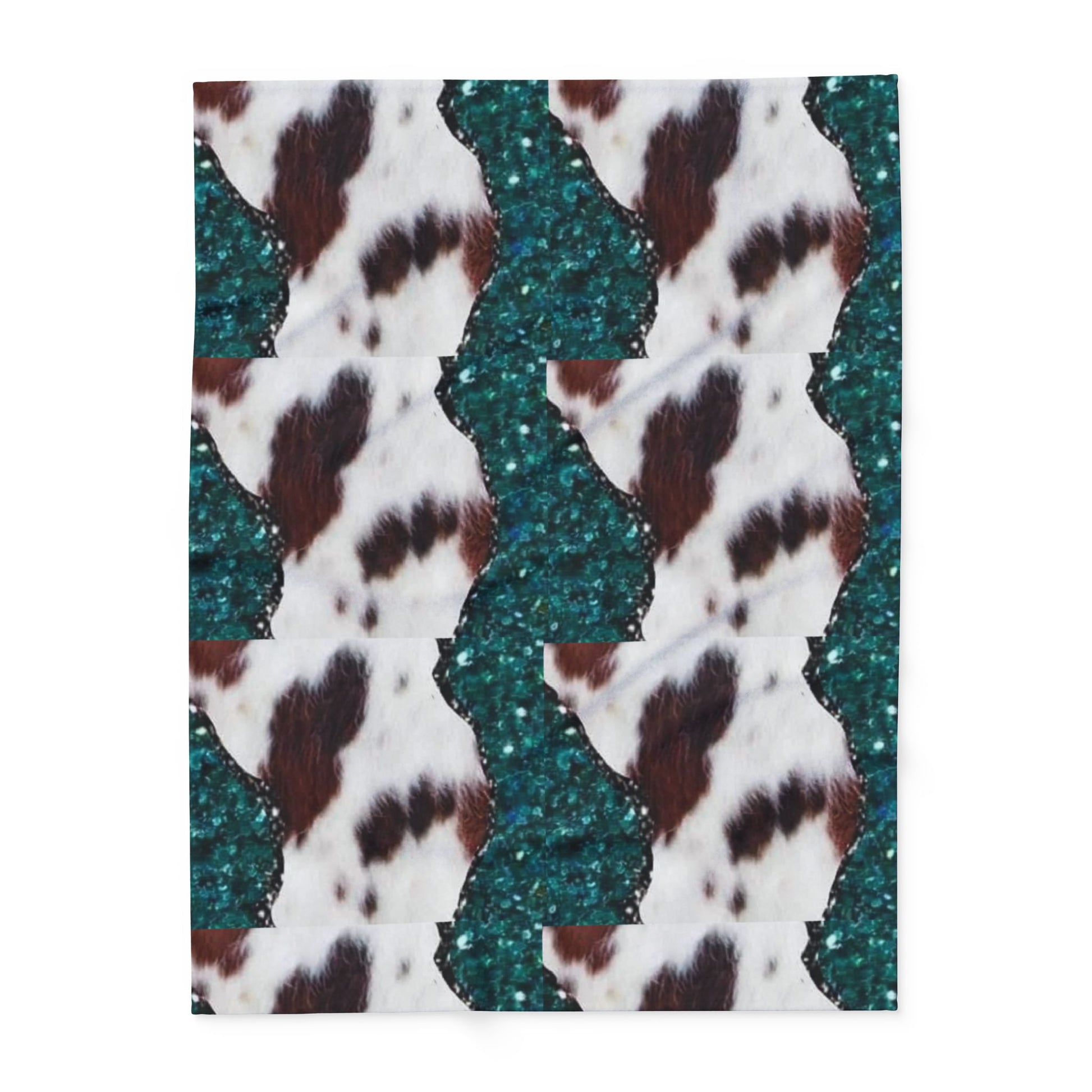 Fleece Blanket — Teal Glitter & Cowhide Pattern Cozy Throw