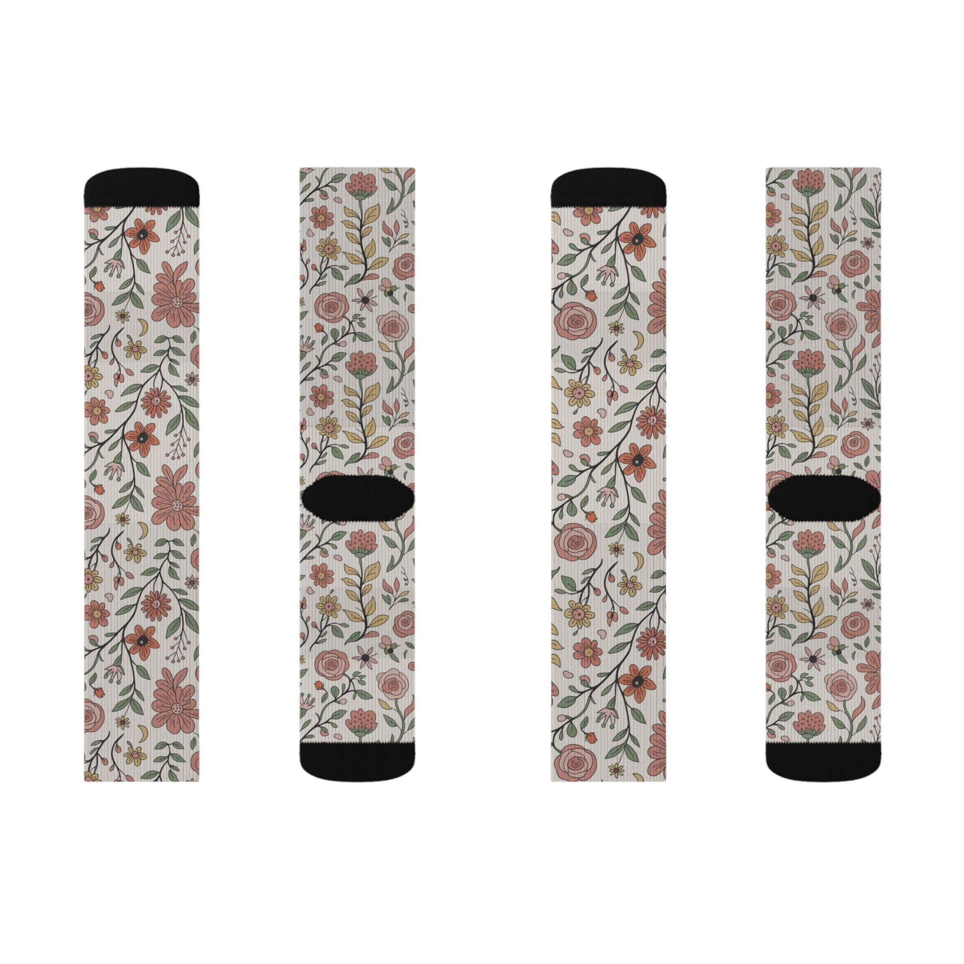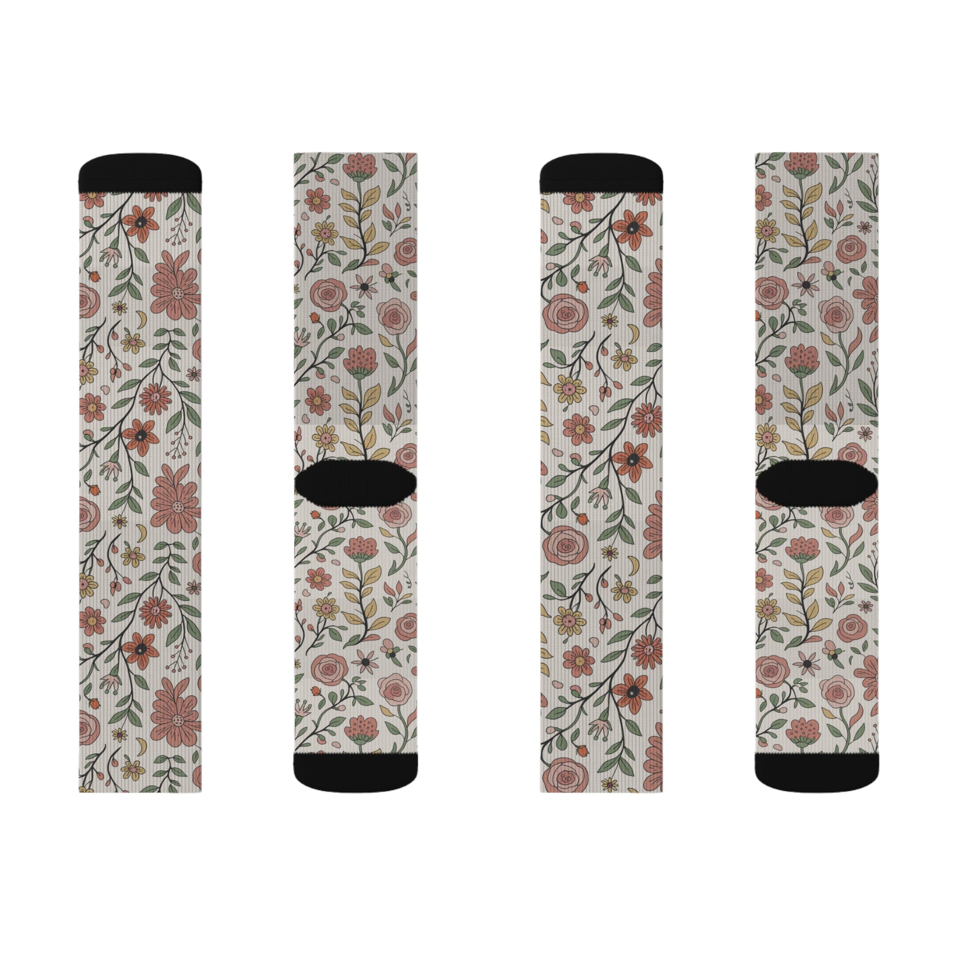 Step into comfort and style with these vibrant sublimation socks! The all-over print showcases a delightful floral design, adding a touch of elegance to your everyday wear. Perfect for lounging at home, pairing with your favorite outfit, or gifting a loved one. These socks cater to anyone who appreciates cozy and unique accessories, making them ideal for holiday gifting, birthdays, or just as a treat for yourself. With their crew length, they provide warmth while offering a stylish flair, ensuring that you feel good with every step you take.