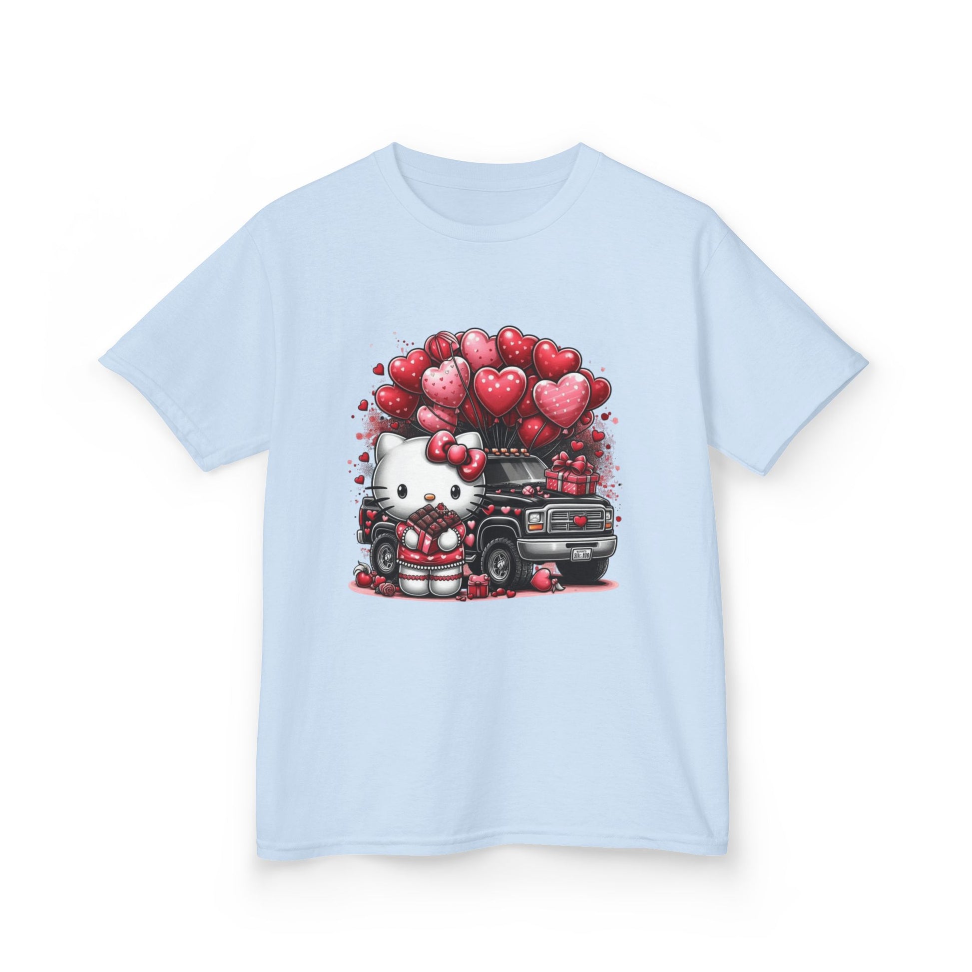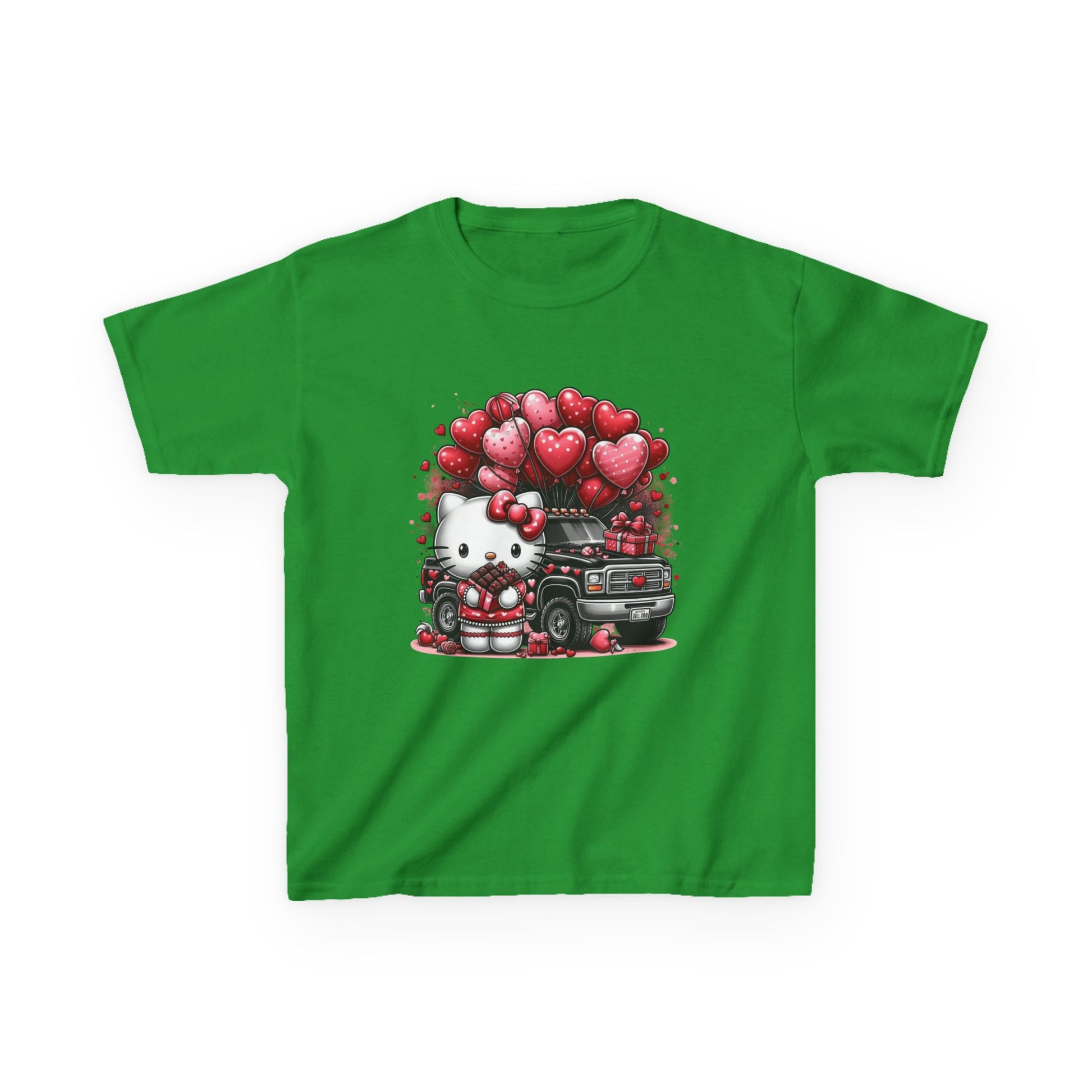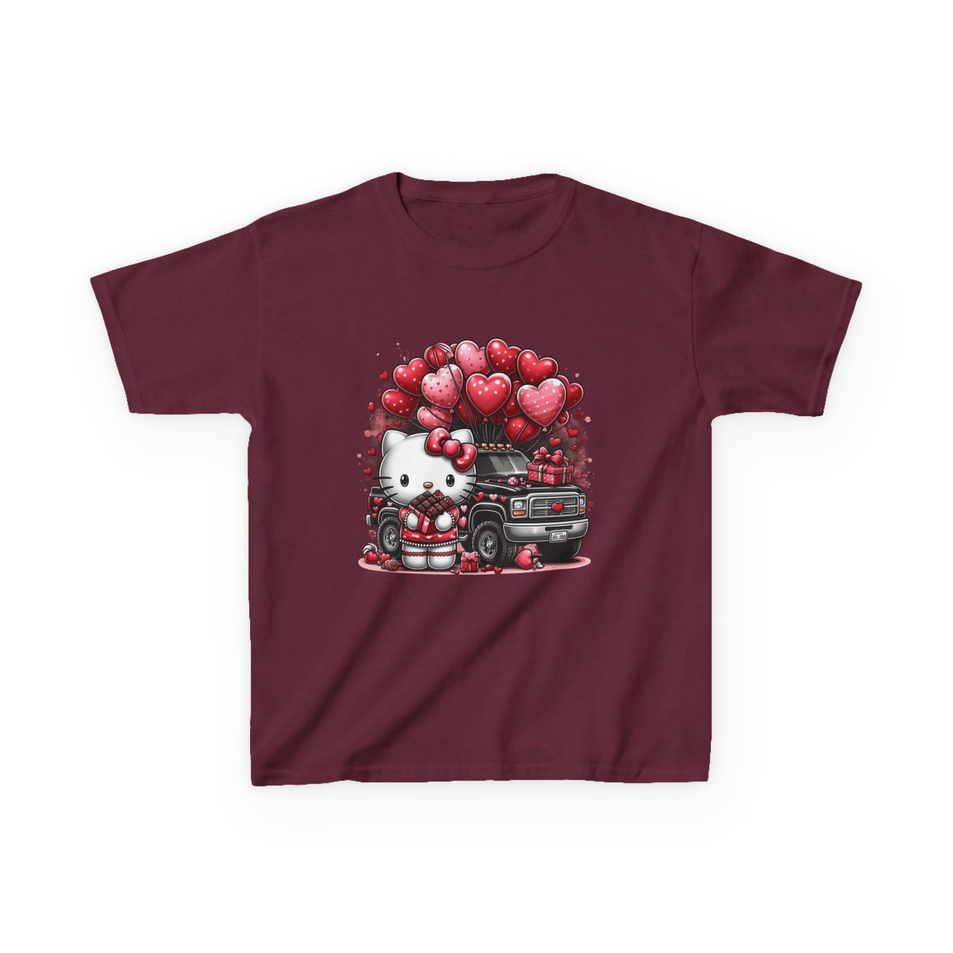 Kids Tee — Cute Kitty with Heart Balloons Valentine Shirt