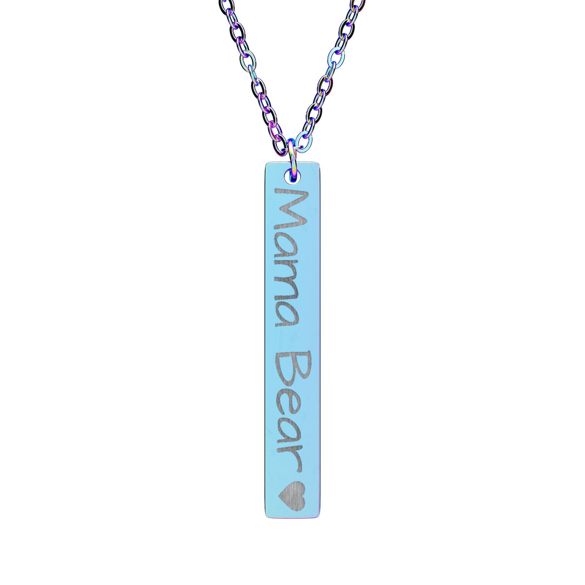 Mama Bear Engraved Vertical Bar Necklace – Personalized Mom Pendant