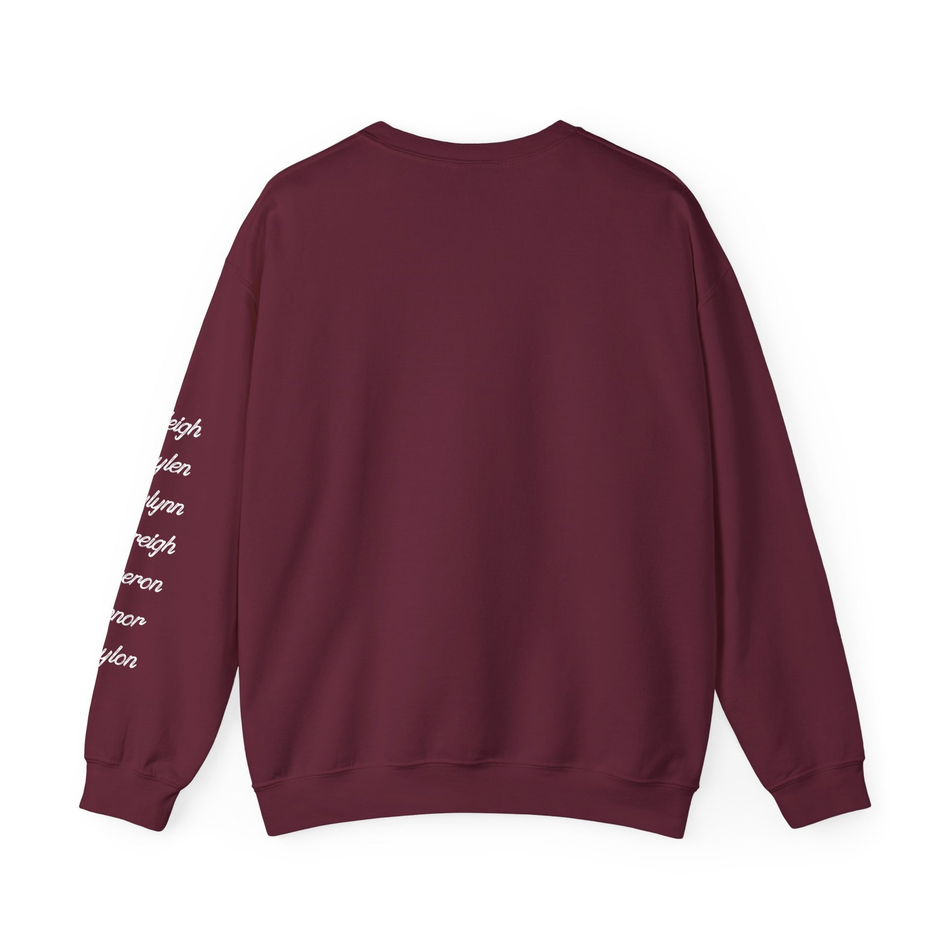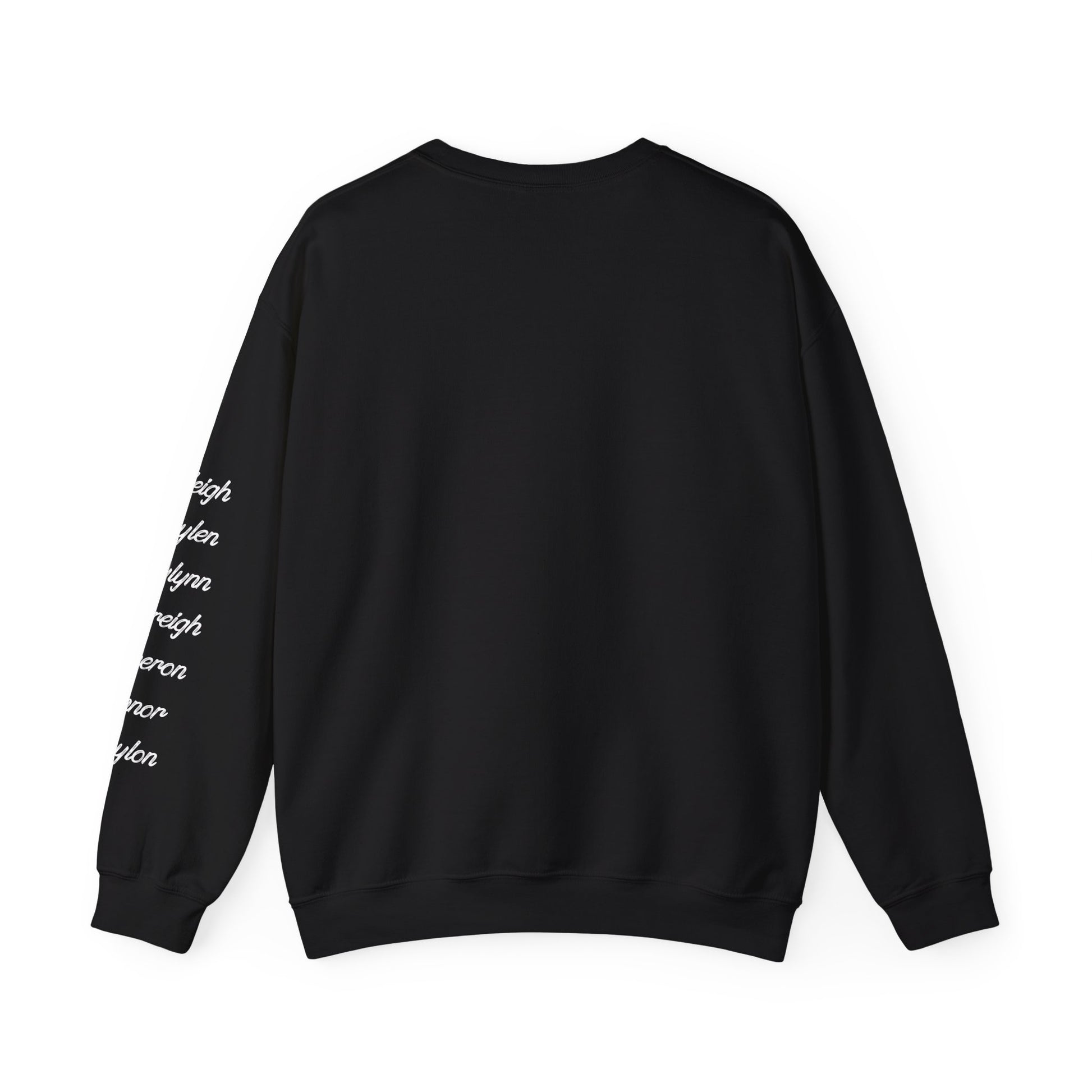 A cozy, thoughtfully made crewneck that reads like a wearable family memory. Soft, medium-heavy fabric and a classic cut give this sweatshirt a warm, lived-in feel while the embroidered script on the chest and names along the sleeve keep loved ones close. It layers easily over tees or under jackets, and its clean black backdrop lets the white embroidery pop for an understated, heartfelt look.