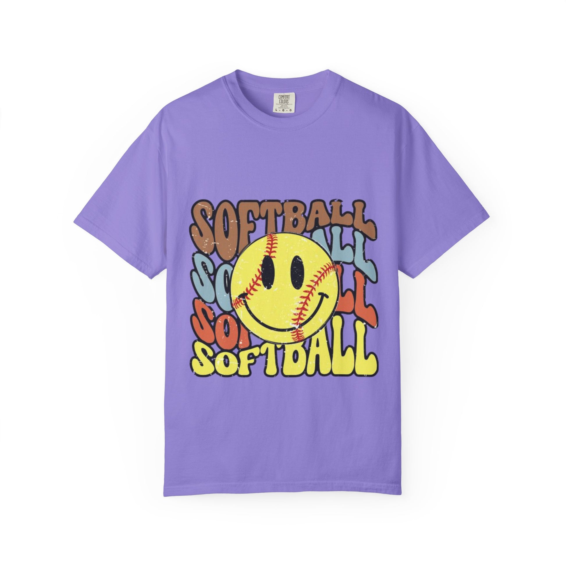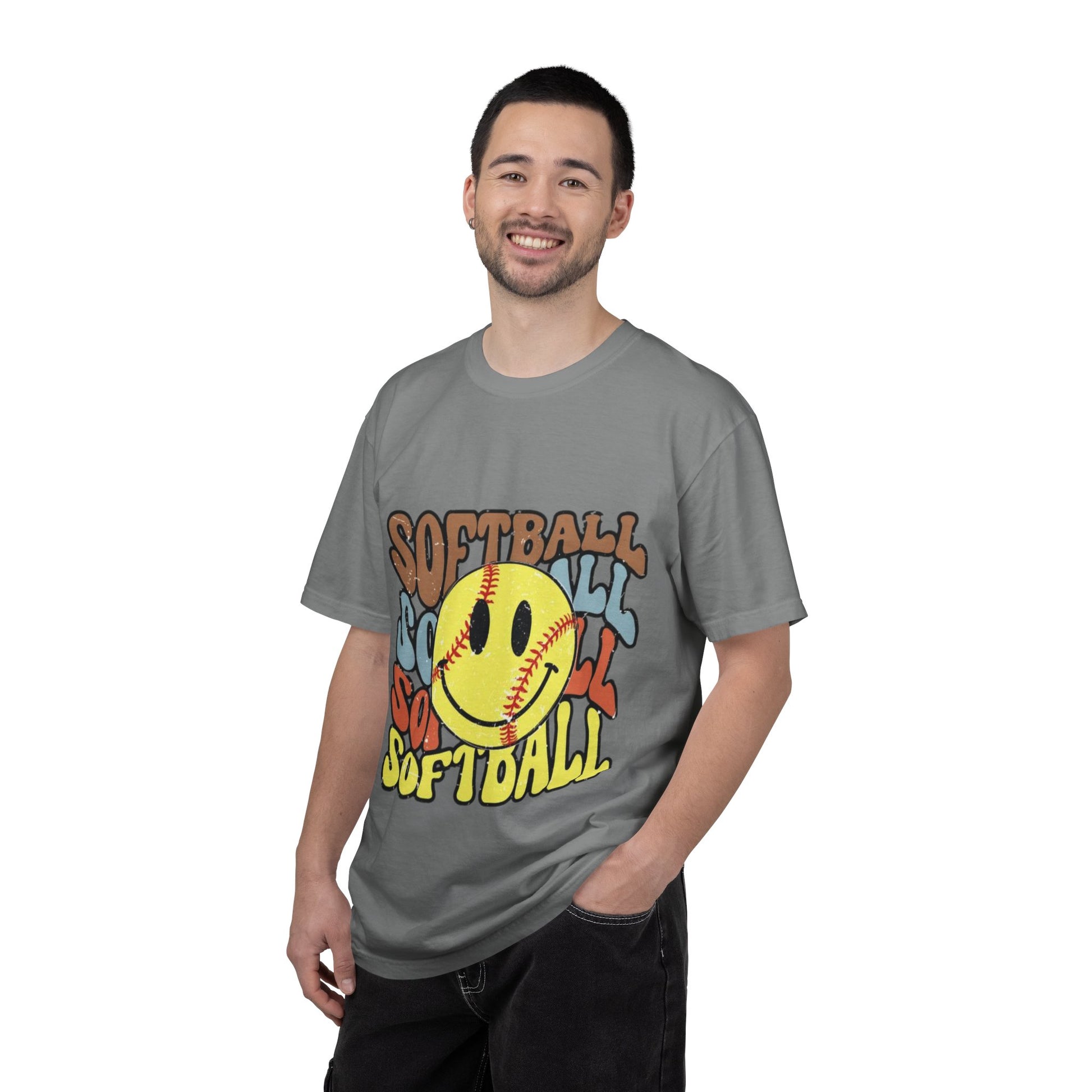 This relaxed, garment-dyed tee brings a playful, retro energy to game day and every day. The front art — a smiling softball surrounded by layered, colorful “SOFTBALL” text — feels like sunlit dugouts and late-afternoon practices. The heavyweight cotton and soft, washed-in color create a lived-in, comforting feel from the first wear. Throw it on after a long day of drills, wear it to team hangouts, or pack it for weekend tournaments — it’s the kind of tee that settles into your rotation and shows off your love of the game without shouting. Soft to the touch, sturdy in the seams, and available in a wide palette of colors and sizes, it’s built for players, coaches, and fans who want vintage vibes with modern durability.