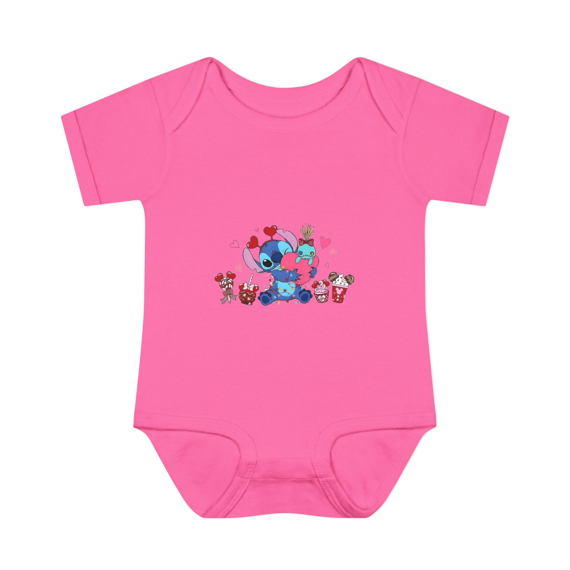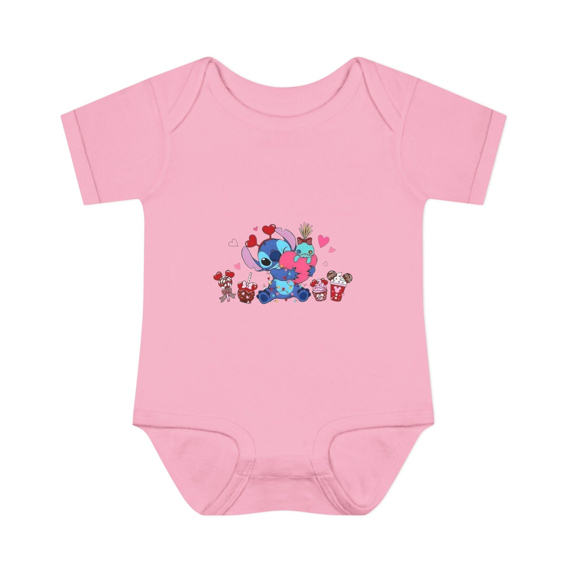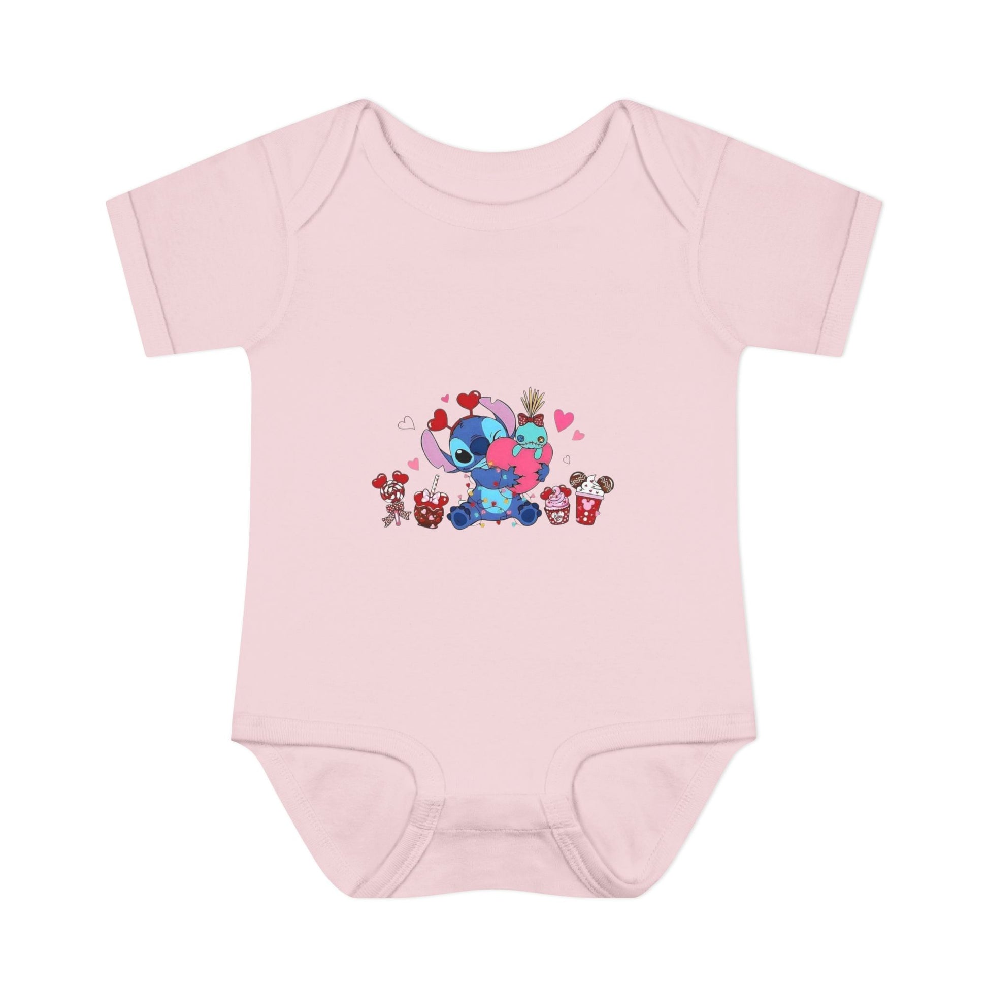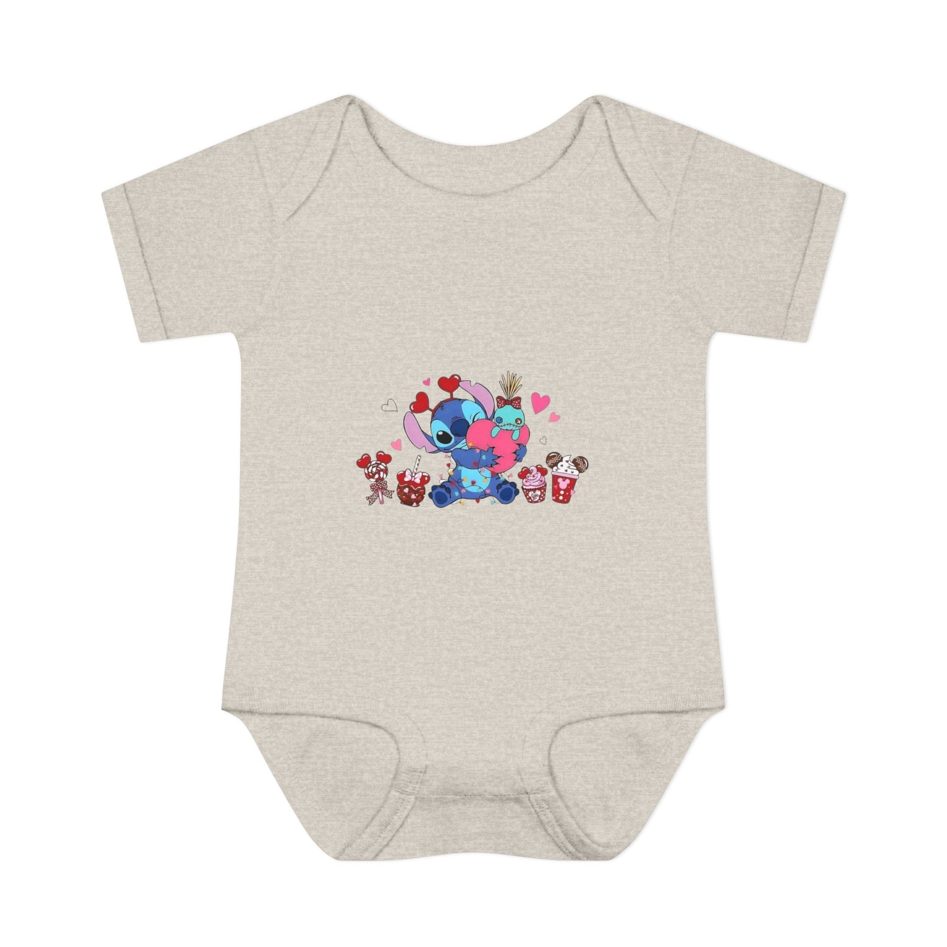 Stitch Valentine Baby Bodysuit β Cute Disney-Inspired Infant Onesie with Hearts & Treats