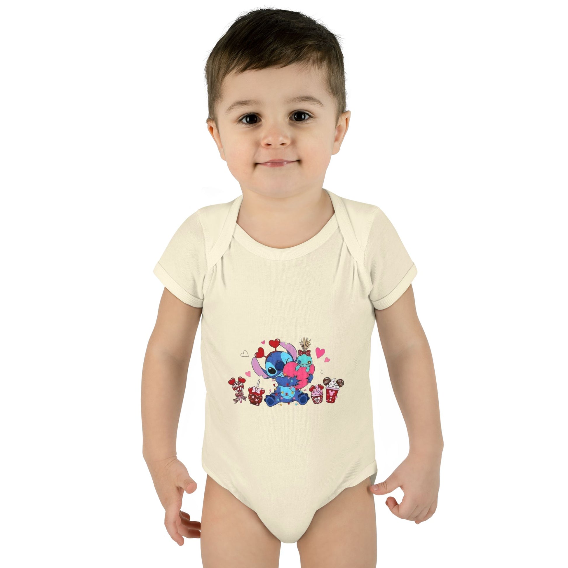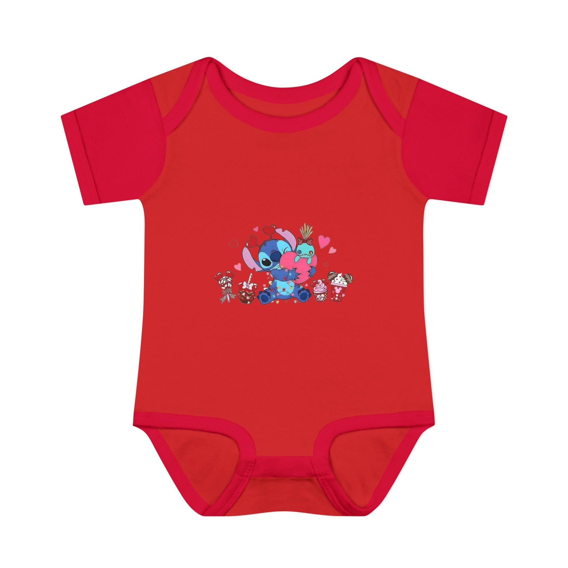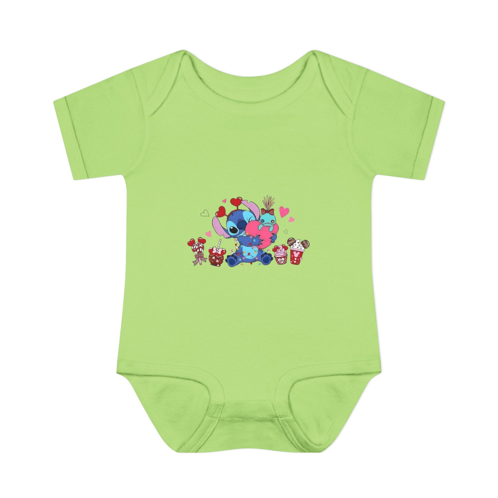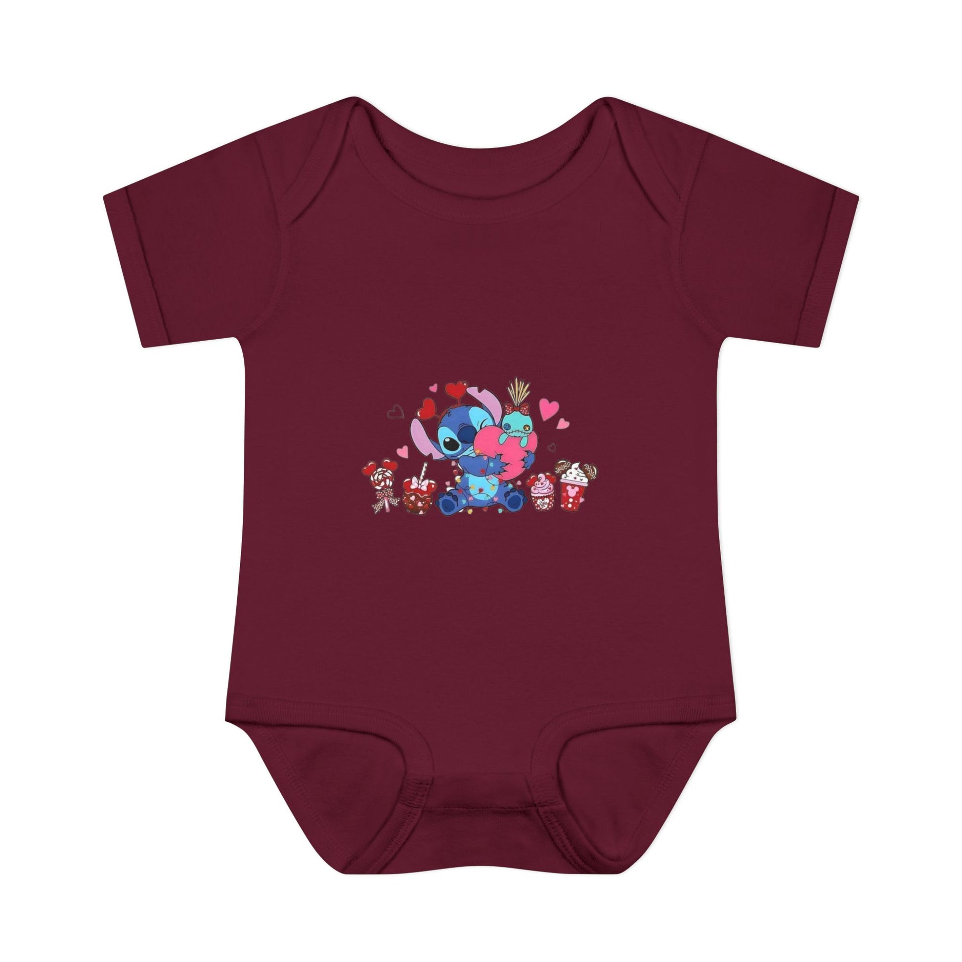 Stitch Valentine Baby Bodysuit β Cute Disney-Inspired Infant Onesie with Hearts & Treats