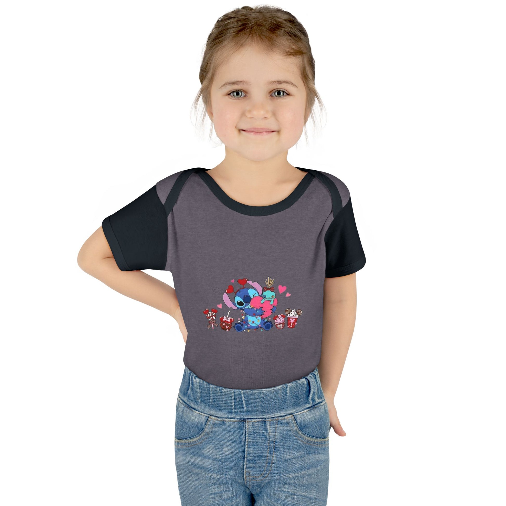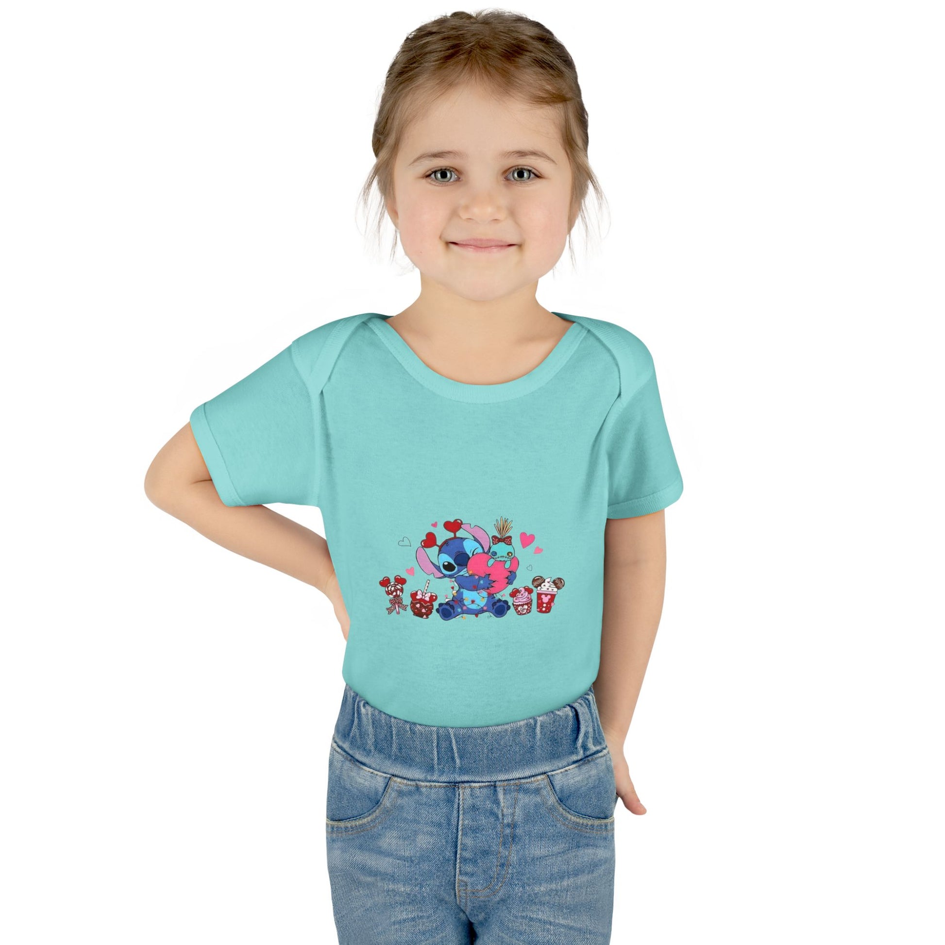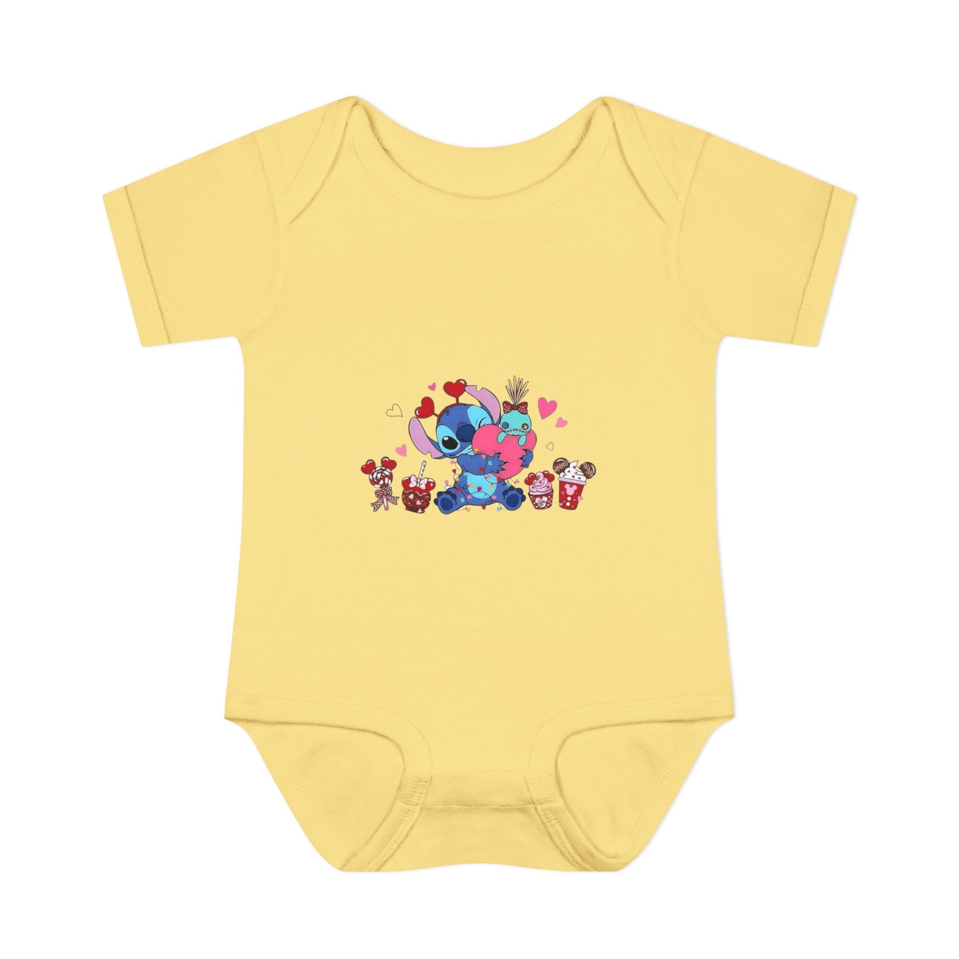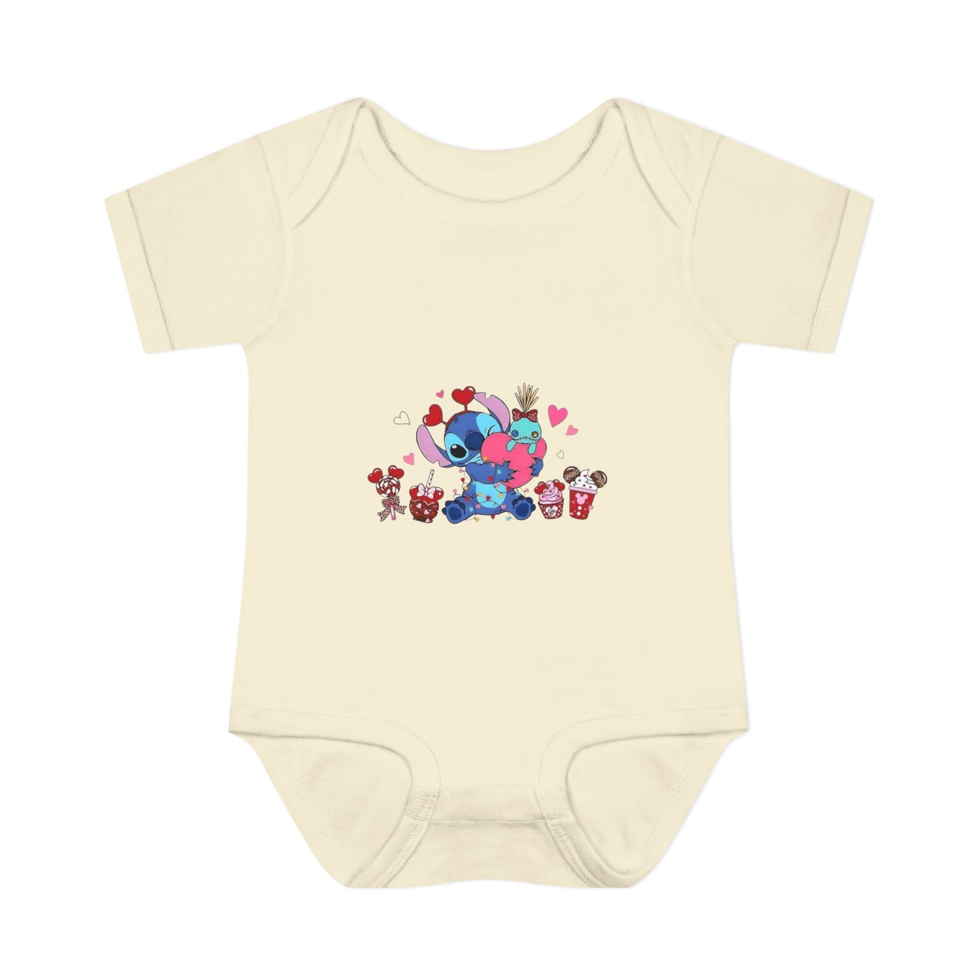 Stitch Valentine Baby Bodysuit β Cute Disney-Inspired Infant Onesie with Hearts & Treats
