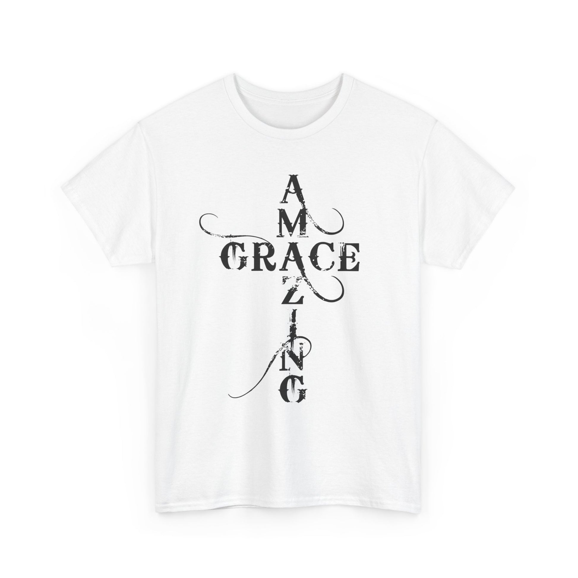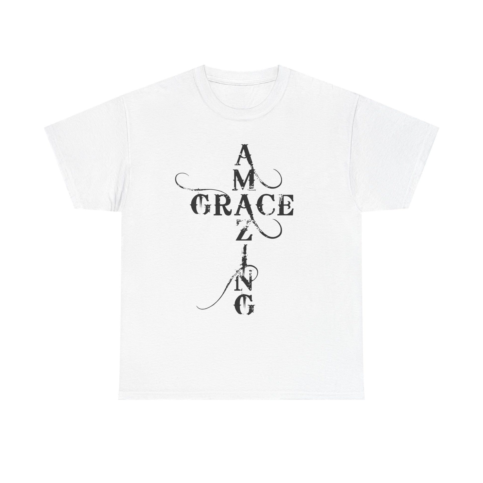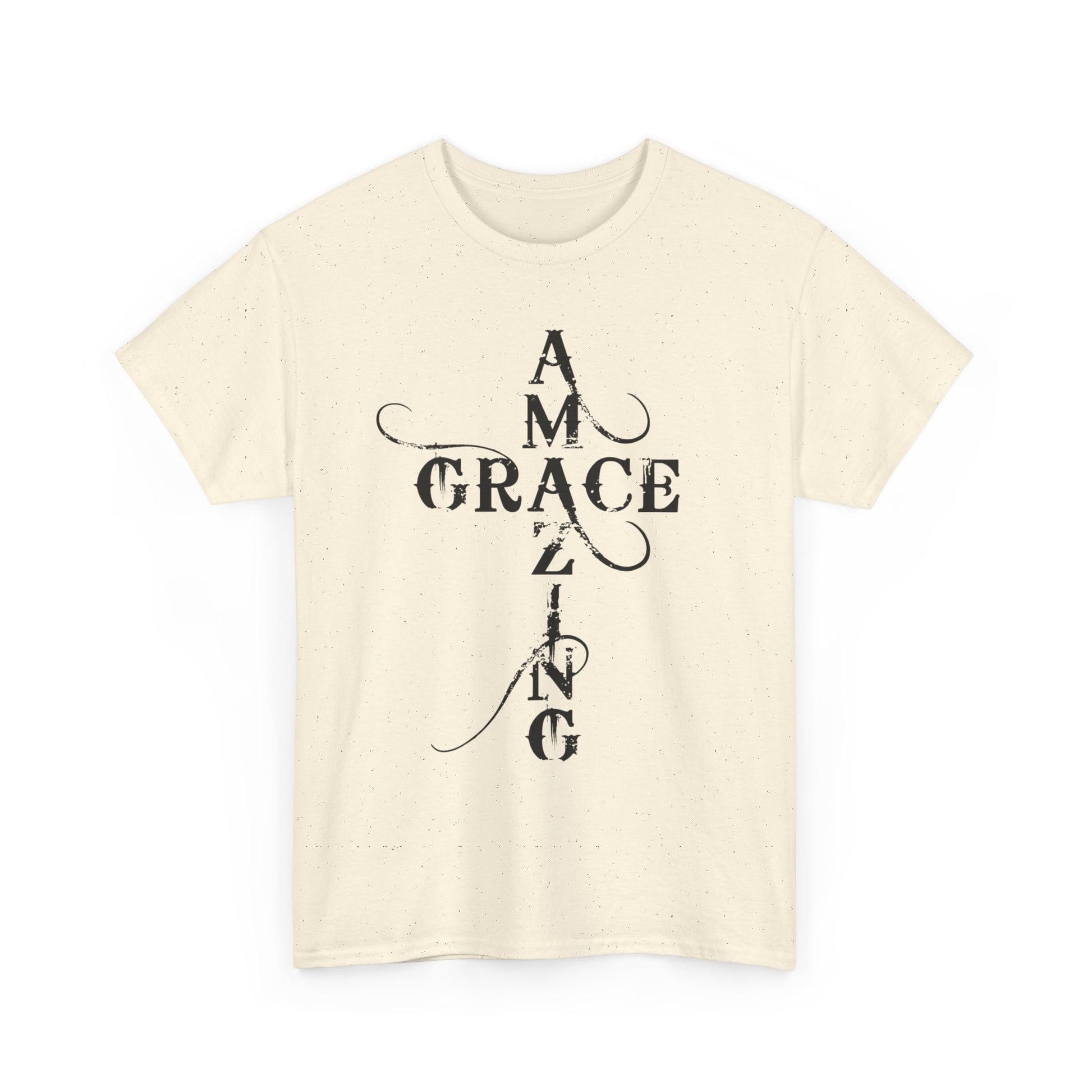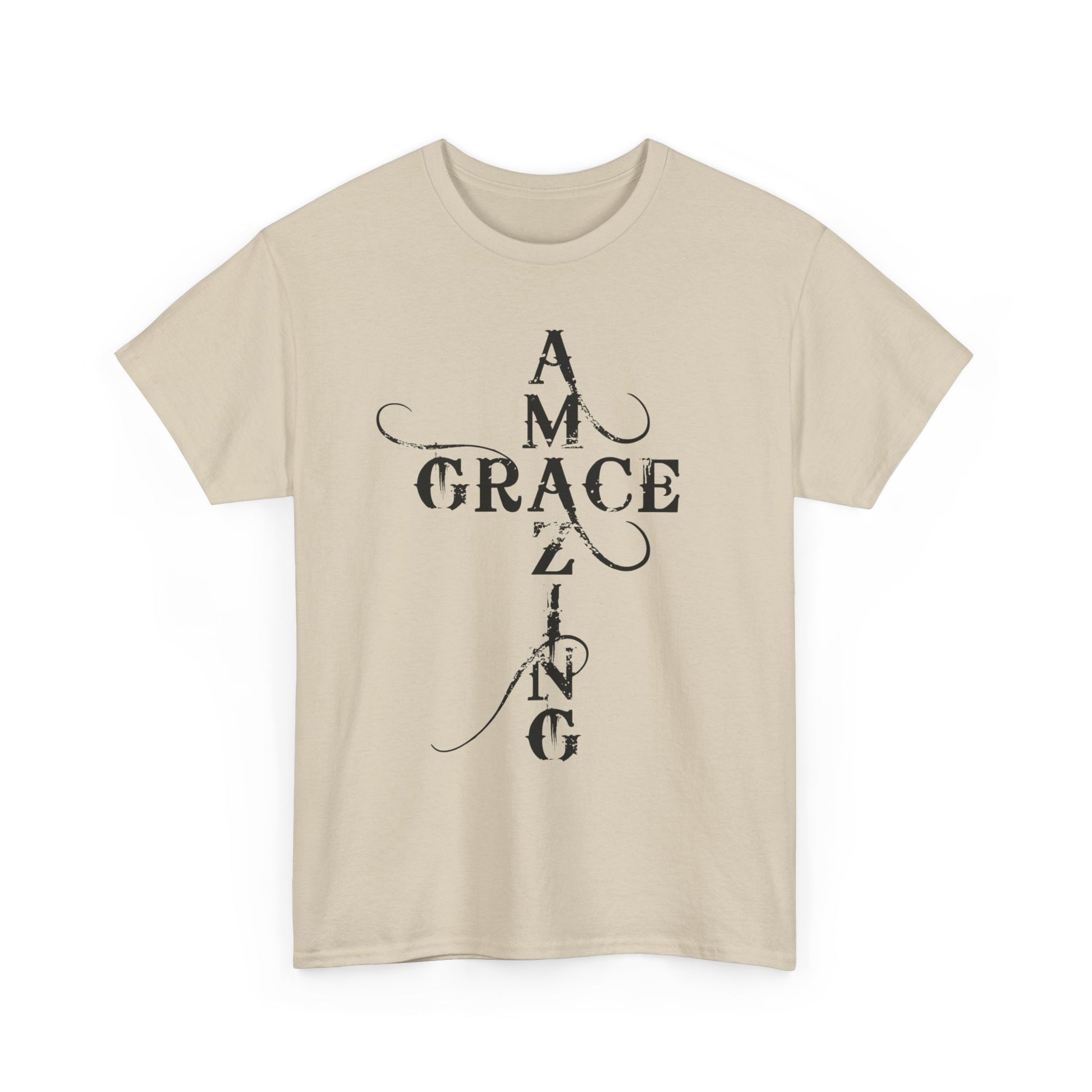 A soft, classic cotton tee printed with quiet, devotional typography that reads like a prayer worn on the chest and back. The front panel stacks the words “AMAZING GRACE” into a vertical cross-like layout with delicate swashes; the back mirrors that approach with the phrase “HOW SWEET THE SOUND?” The result is an understated, contemplative shirt that carries spiritual meaning without loud graphics — comfortable enough for daily wear, thoughtful enough for church gatherings or reflective moments. The breathable 100% cotton body and taped shoulders keep the silhouette neat; tear-away label and ribbed collar add scratch-free comfort. Wear it layered under a jacket for fellowship night, or alone while sitting with a cup of coffee and a hymnbook.