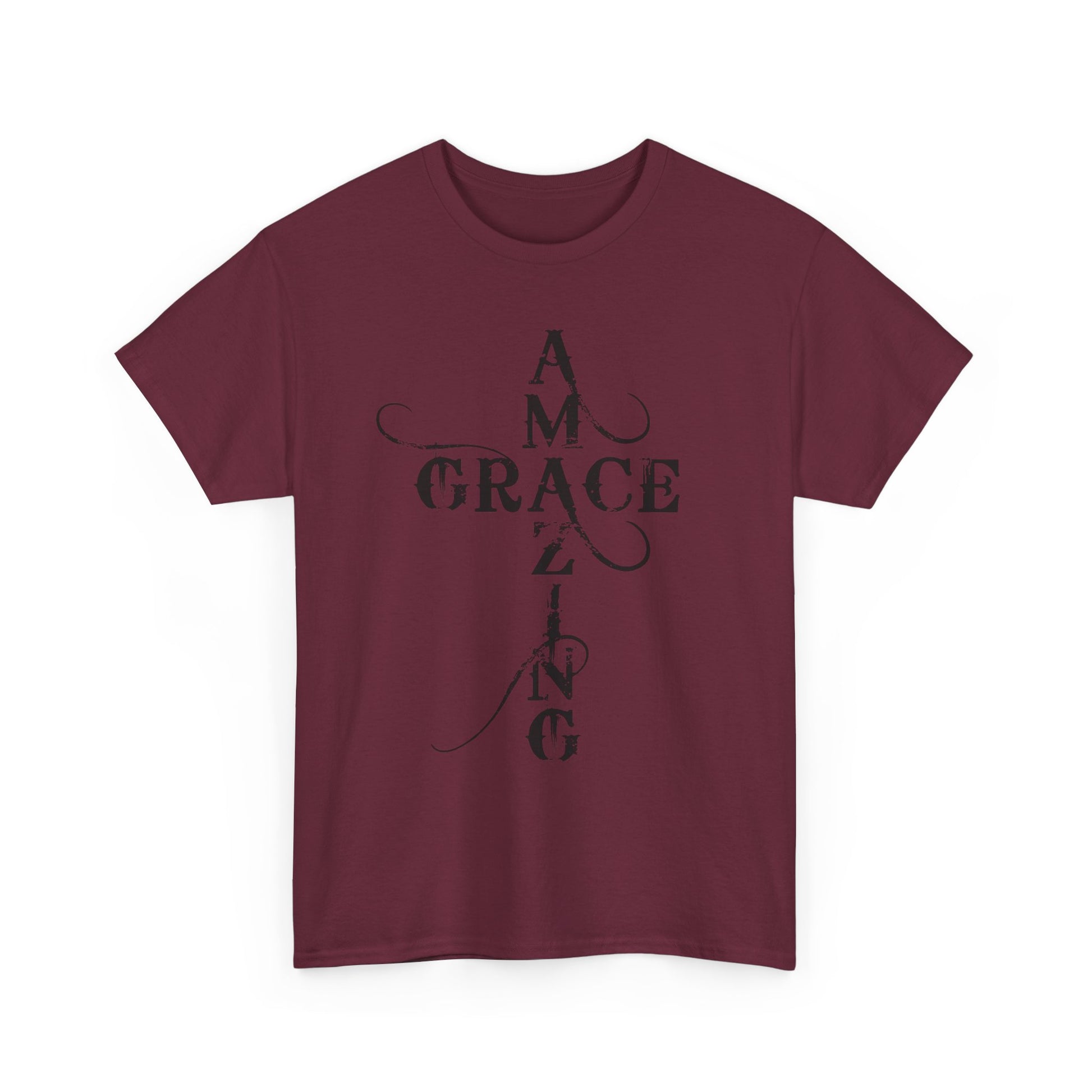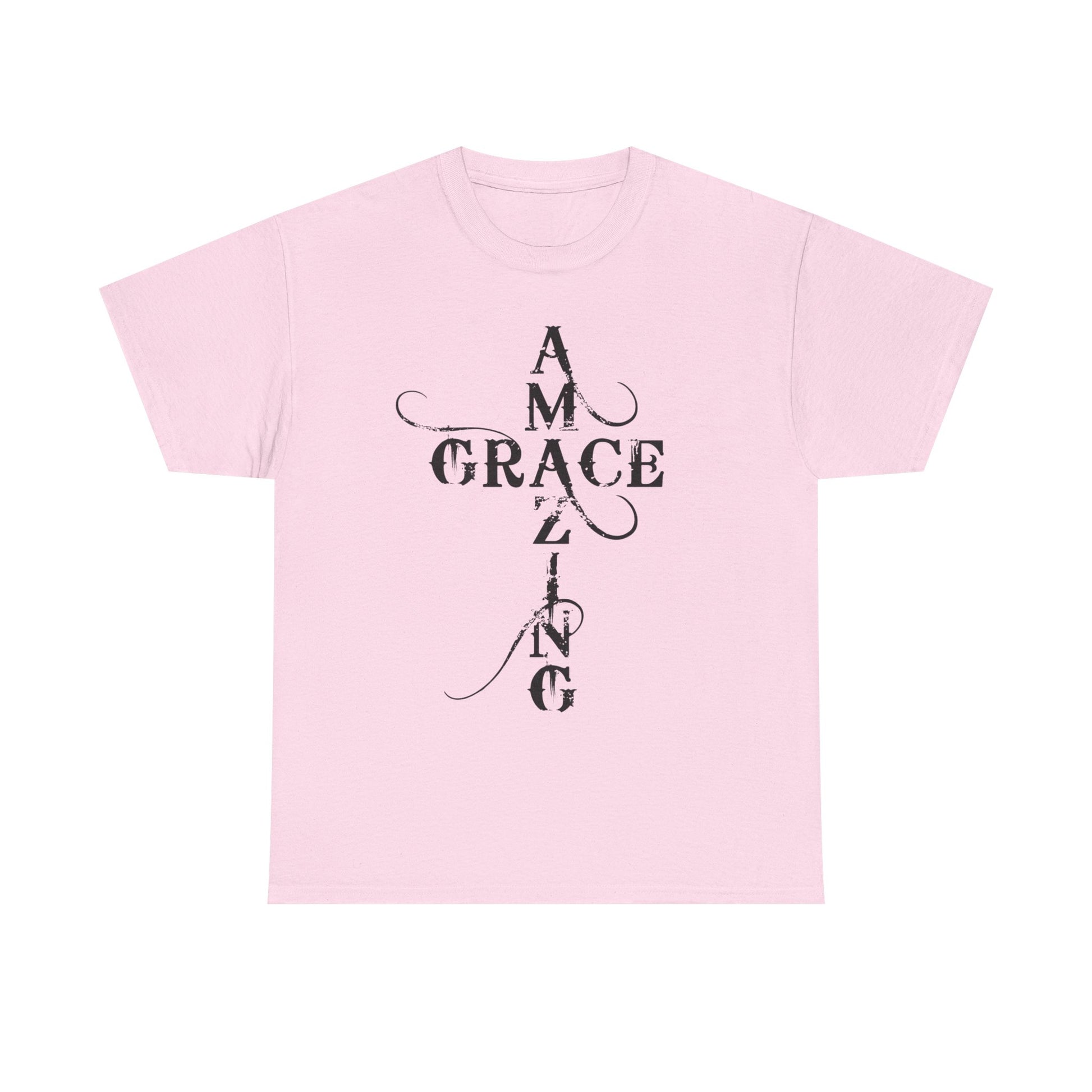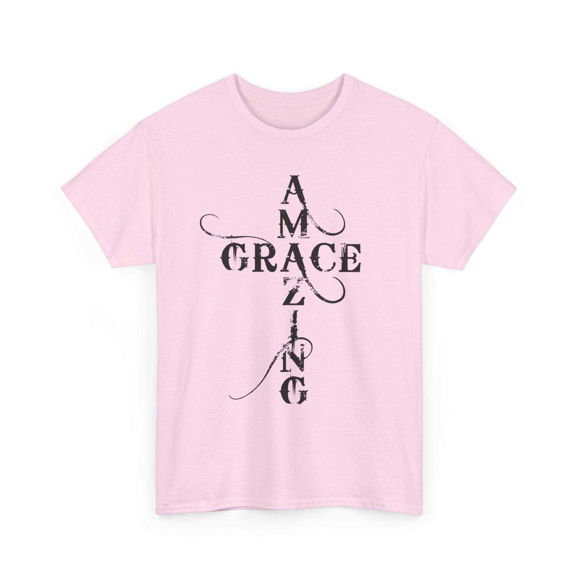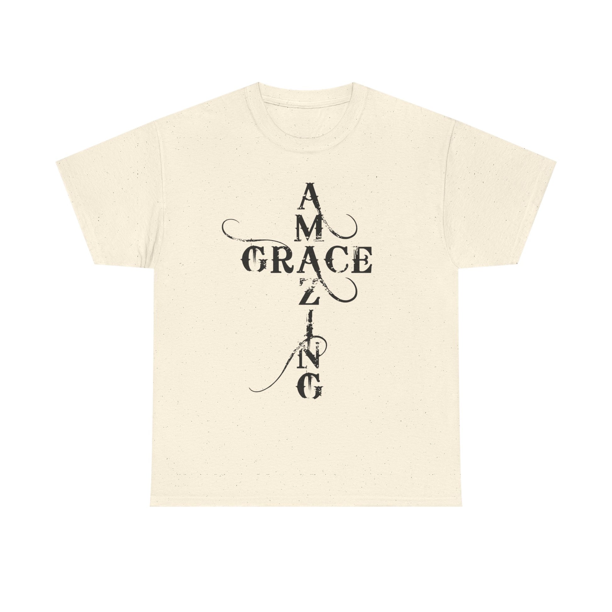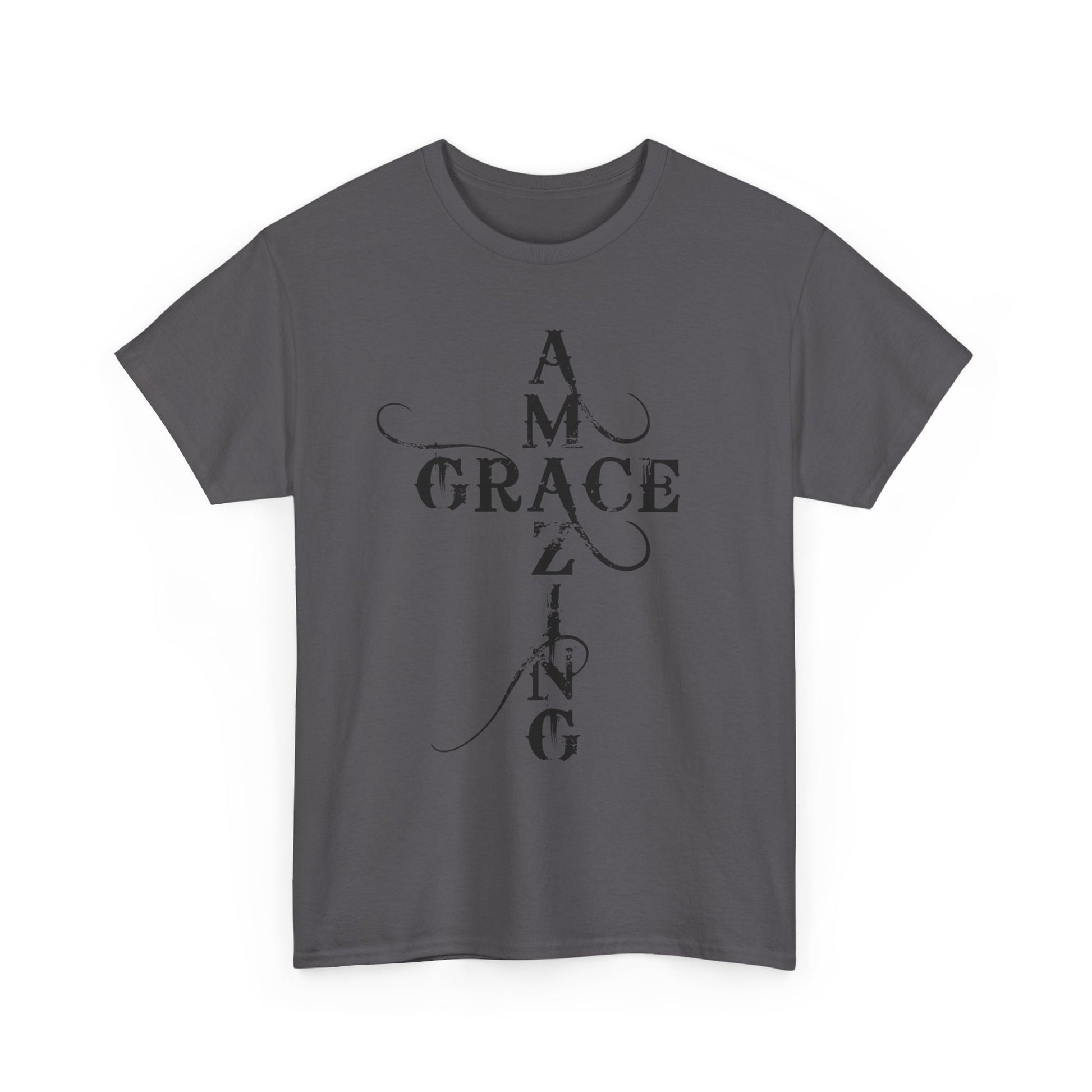 A soft, classic cotton tee printed with quiet, devotional typography that reads like a prayer worn on the chest and back. The front panel stacks the words “AMAZING GRACE” into a vertical cross-like layout with delicate swashes; the back mirrors that approach with the phrase “HOW SWEET THE SOUND?” The result is an understated, contemplative shirt that carries spiritual meaning without loud graphics — comfortable enough for daily wear, thoughtful enough for church gatherings or reflective moments. The breathable 100% cotton body and taped shoulders keep the silhouette neat; tear-away label and ribbed collar add scratch-free comfort. Wear it layered under a jacket for fellowship night, or alone while sitting with a cup of coffee and a hymnbook.