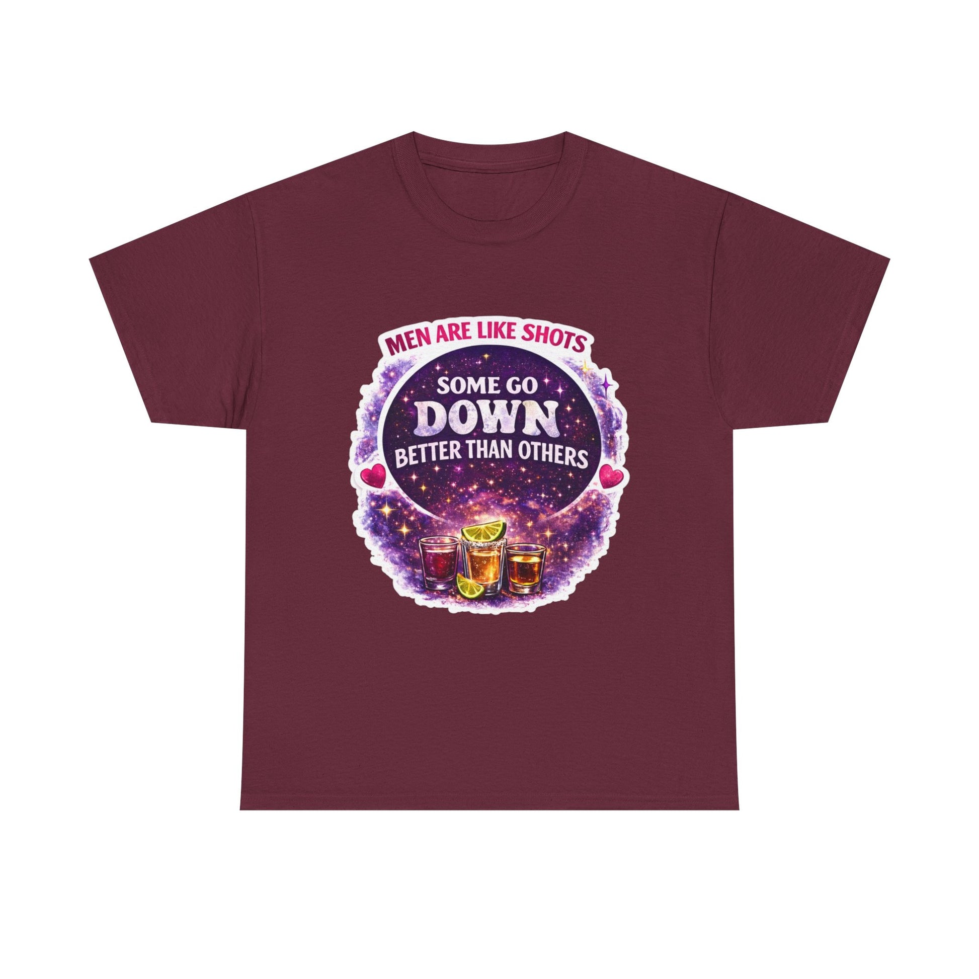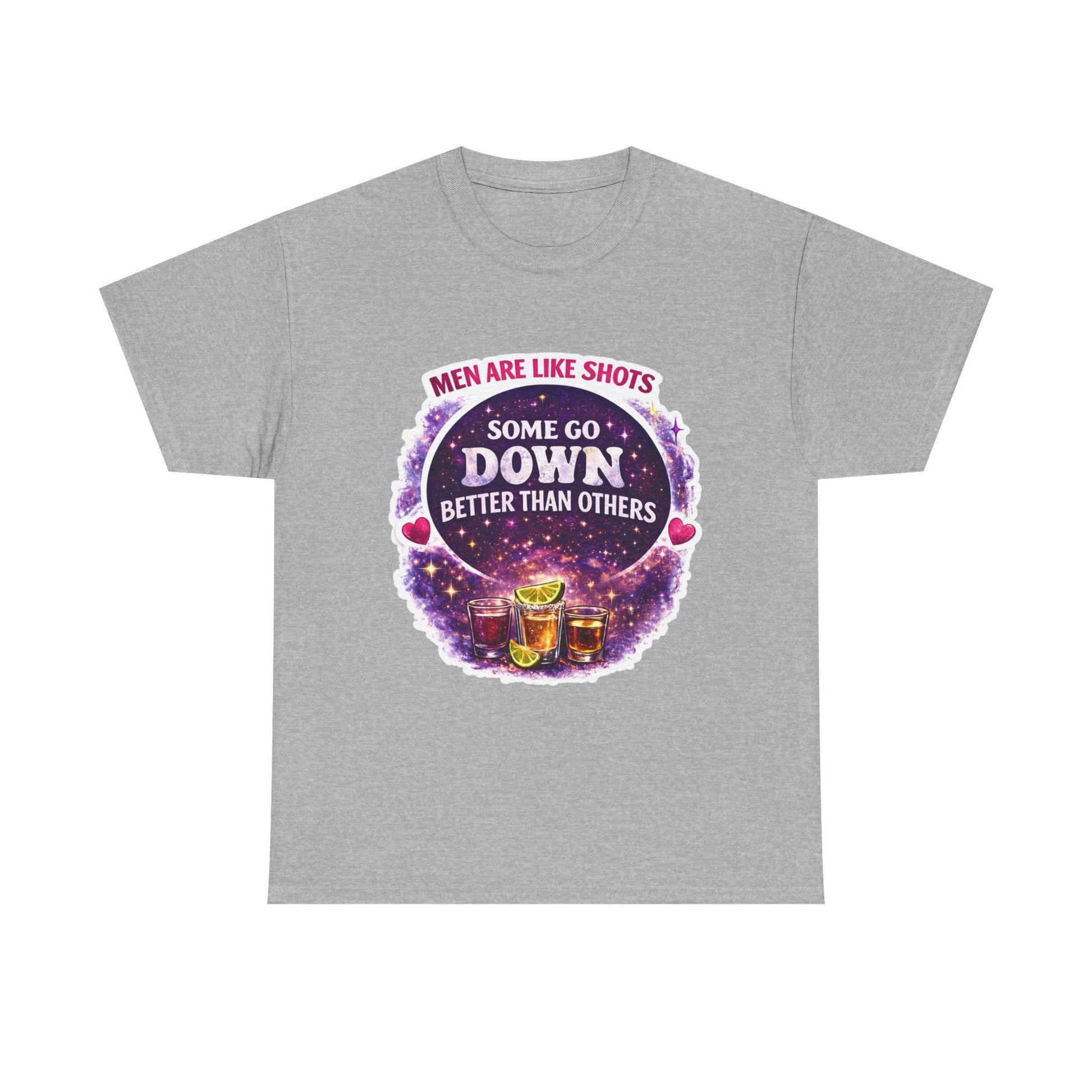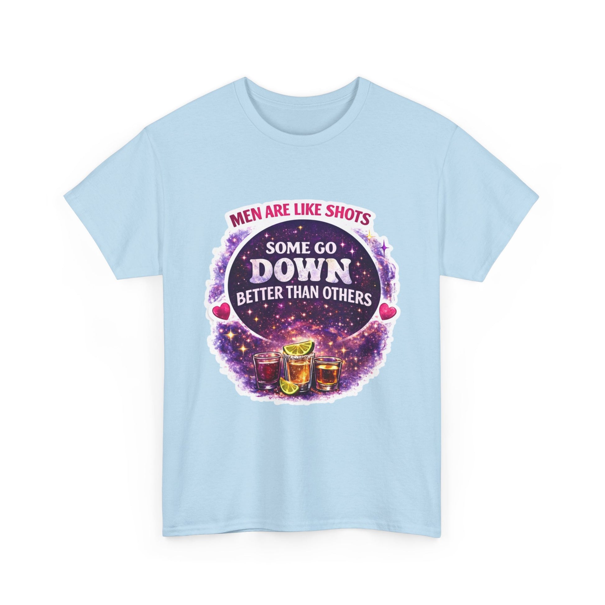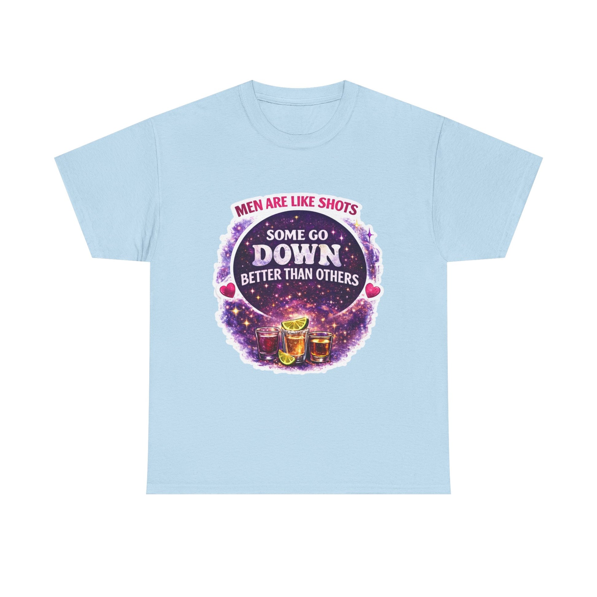 T-Shirt Cosmic Design — "Men Are Like Shots: Some Go Down Better Than Others" Funny Drinking Tee