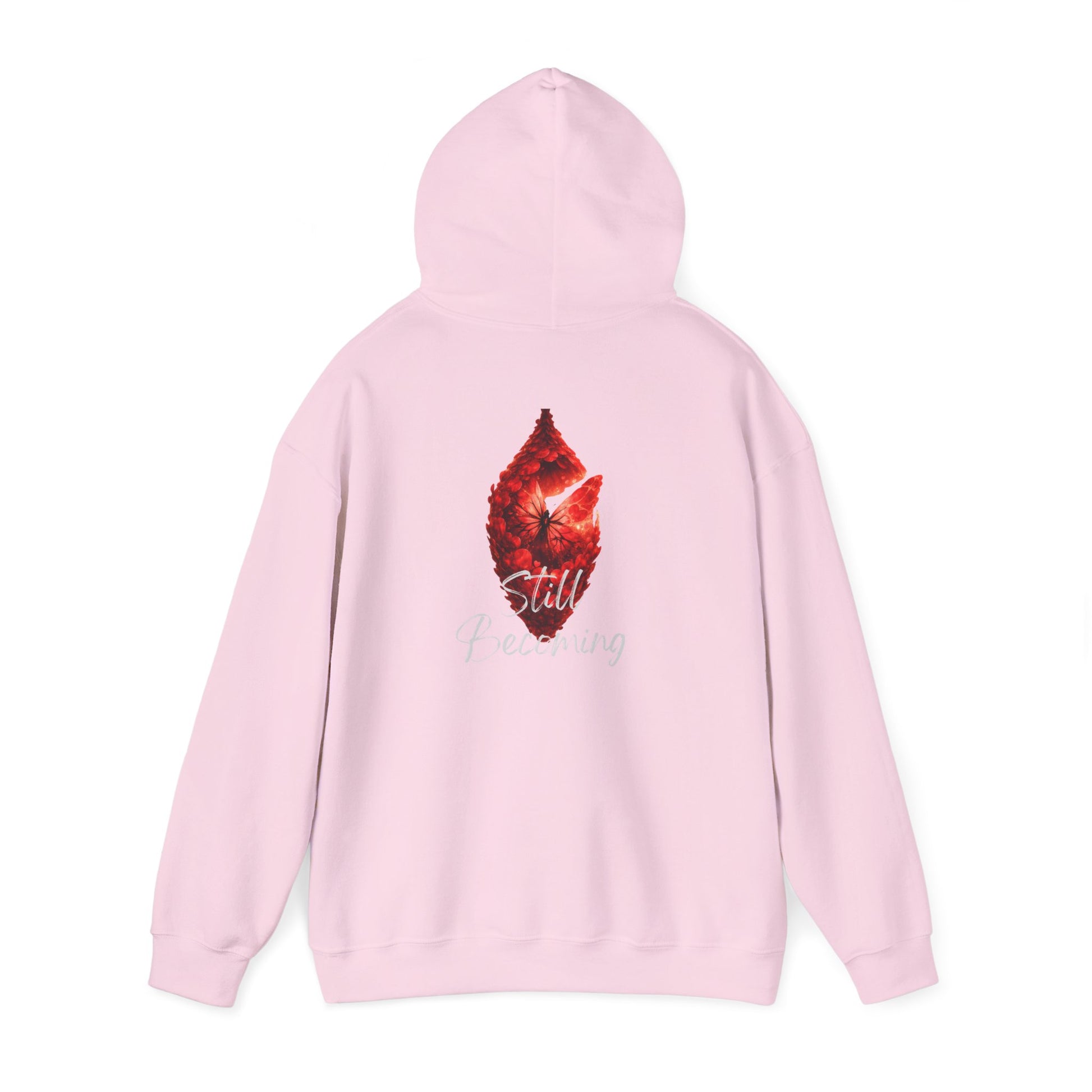 Soft, snug, and quietly expressive — this cozy hooded sweatshirt carries a delicate pink butterfly at the chest, like a small reminder to slow down and breathe. The muted design sits on a clean white background for subtle, everyday wear. It warms on cool mornings, tucks hands into the roomy kangaroo pocket while you stroll, and layers easily under a coat for commuting or coffee runs. Lightweight enough for layered comfort, yet substantial enough to feel like a comforting wrap on chilly evenings. Wear it when you want a gentle, personal touch to your outfit — calm, simple, and quietly thoughtful.